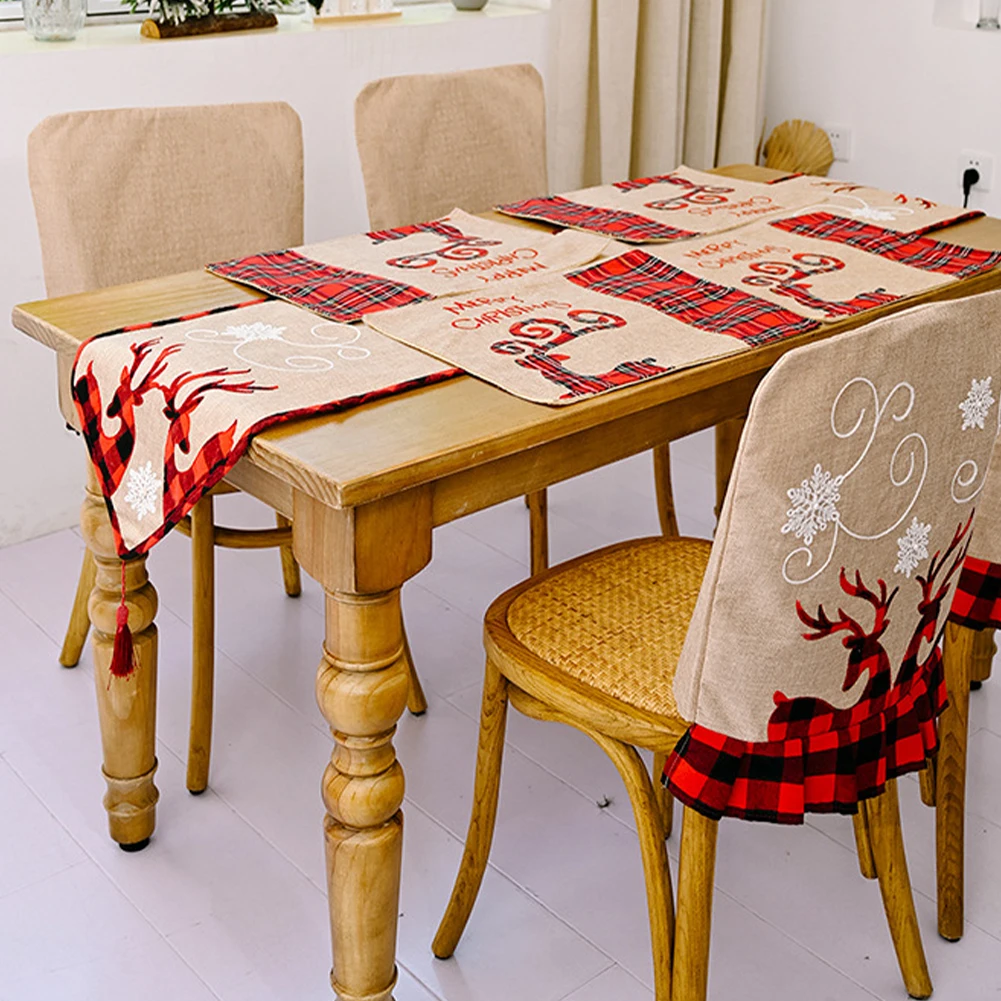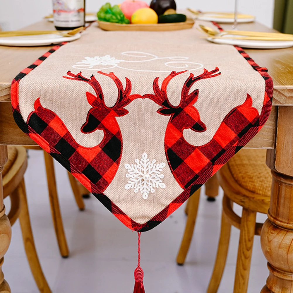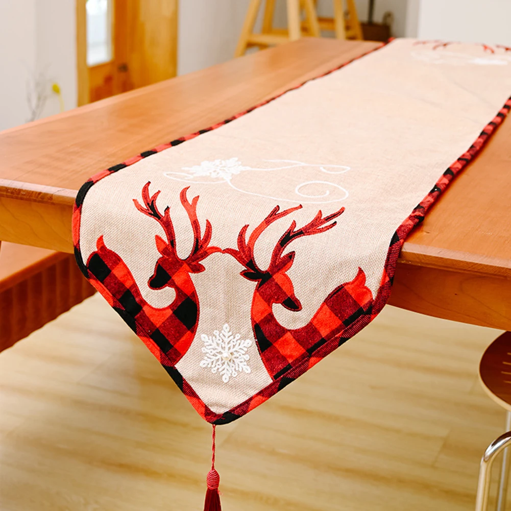 Новогодняя настольная дорожка 35*180 см, Рождественский лось, печатный Рождественский стол, настольная Декоративная скатерть, украшение, подарок на Новый год 2022