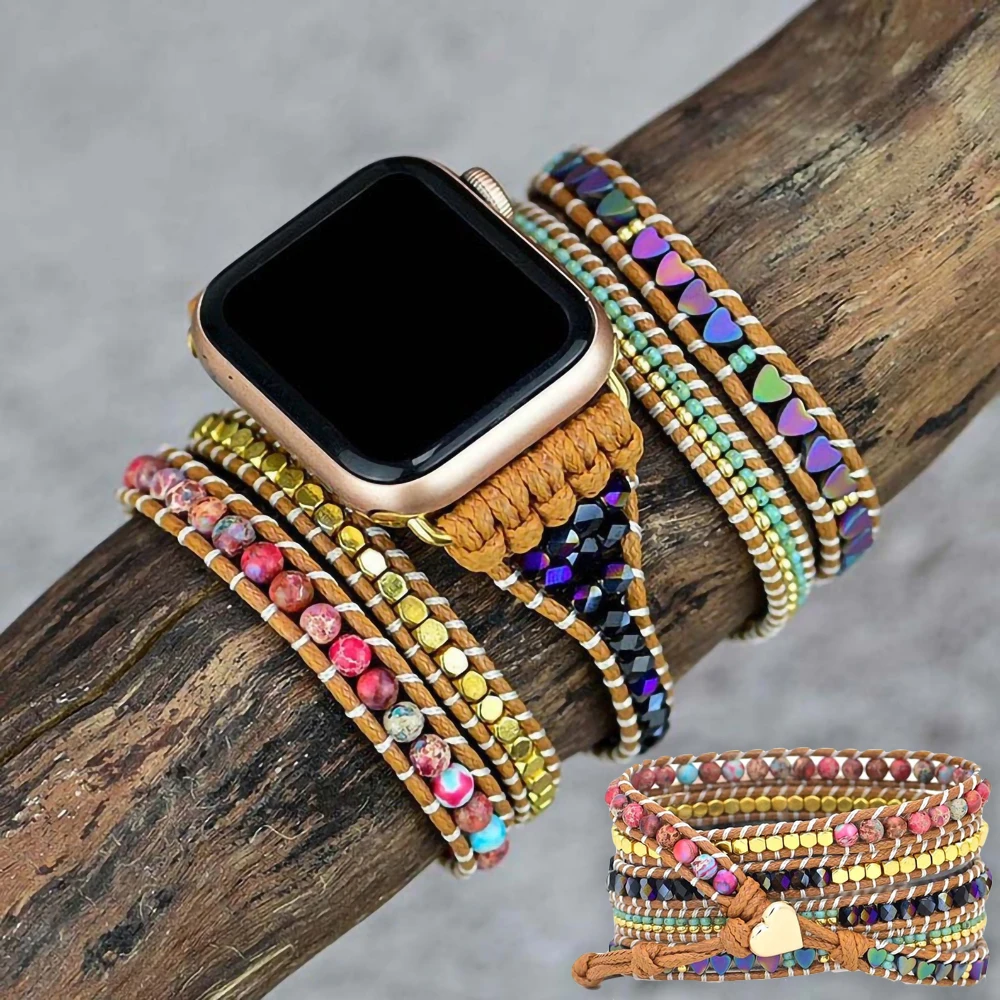 Богемный ремешок для Apple Watch, 38 дюймов, 42 мм, защита сердца, многослойный браслет для Iwatch Series 7, фиолетовая фотография