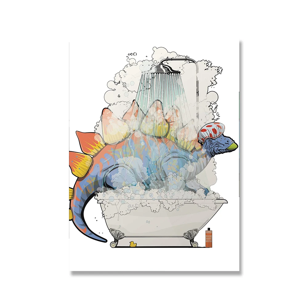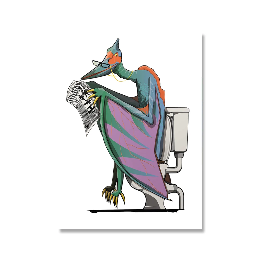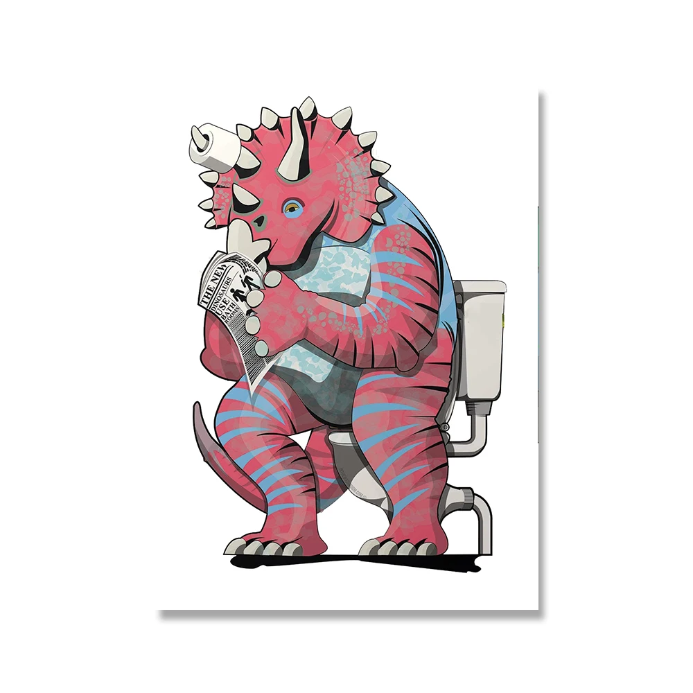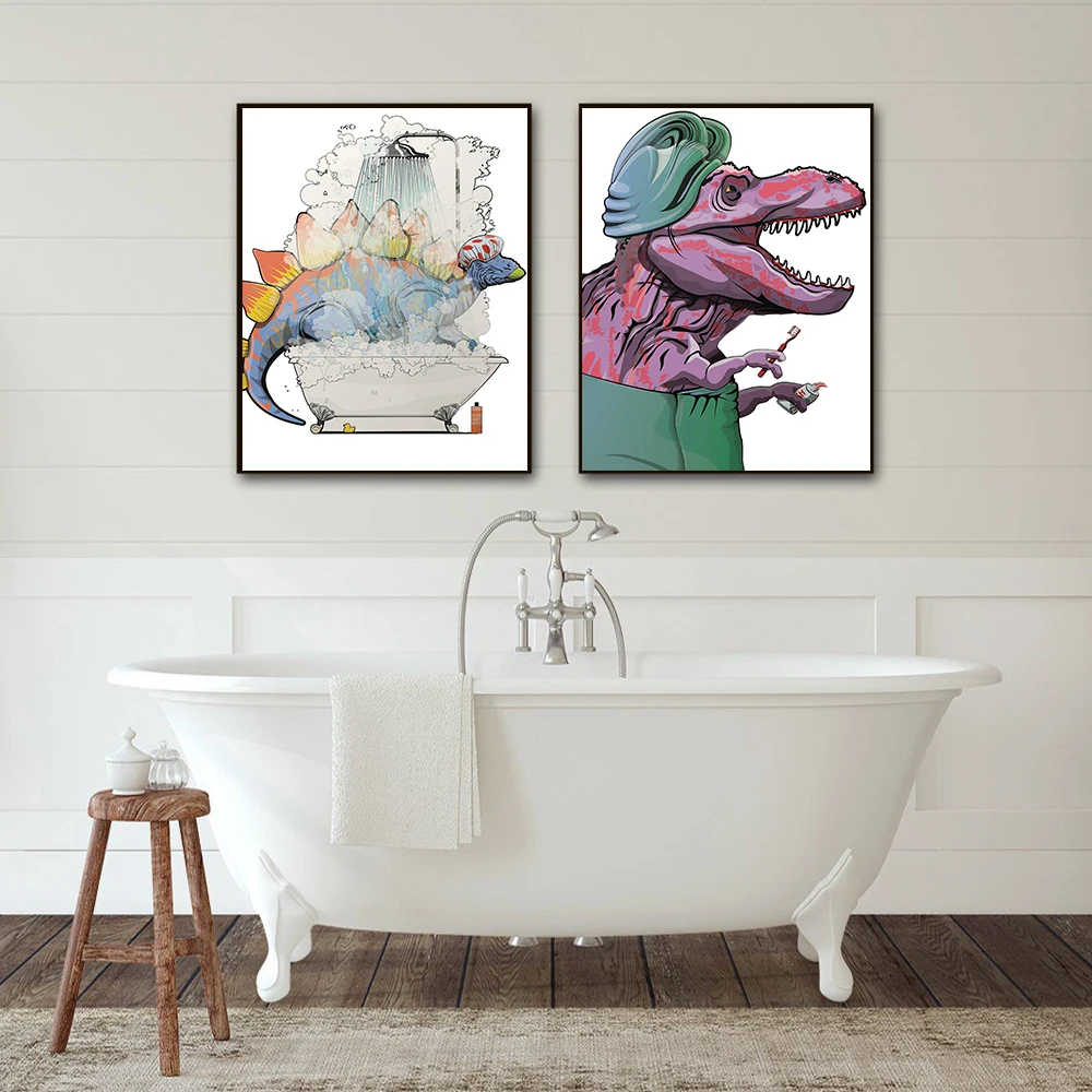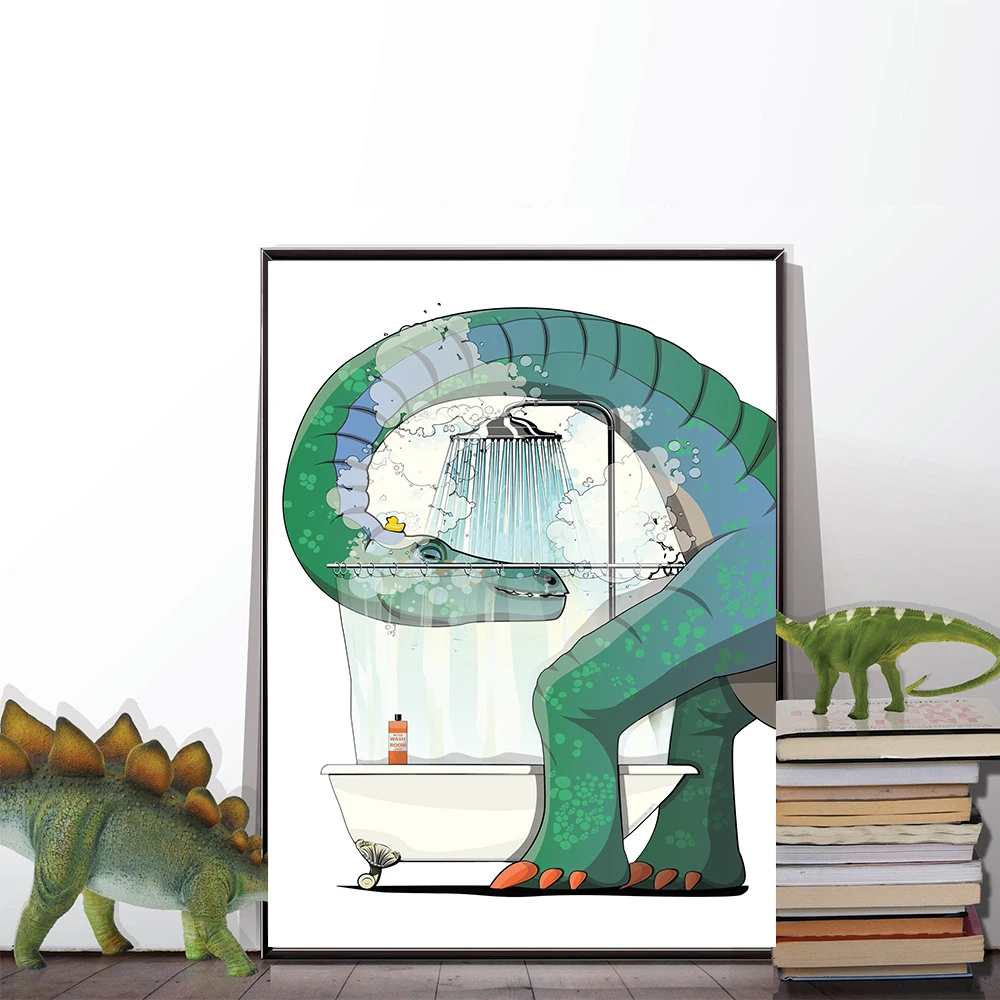 Настенная картина в виде динозавров в ванной, настенная Картина на холсте, скандинавские плакаты и принты, американский юмор, настенные картины для туалета, домашний декор