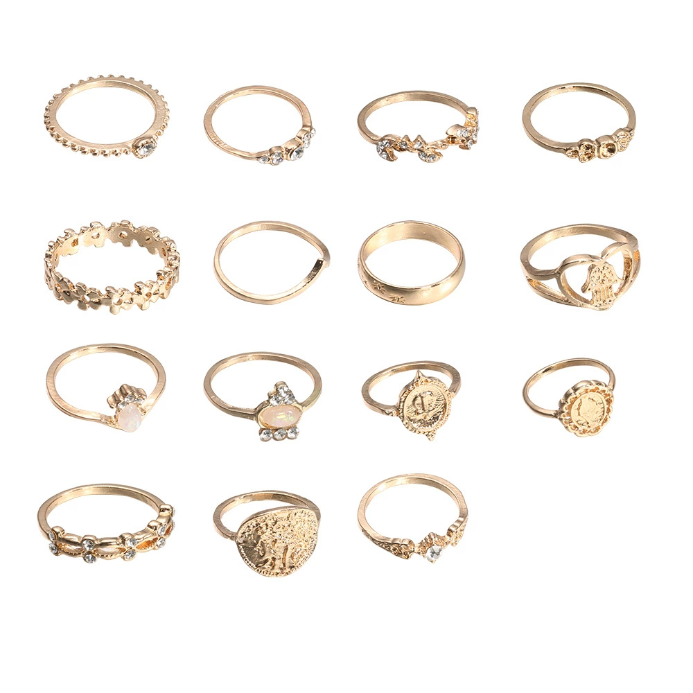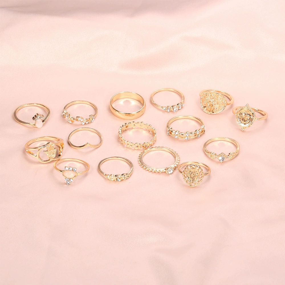Винтажные красивые Портретные золотые монеты крест узор любовь Фатима кольцо с изображением ладони набор из пятнадцати позолоченных женских колец