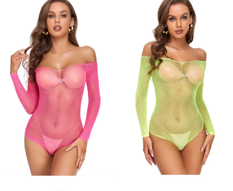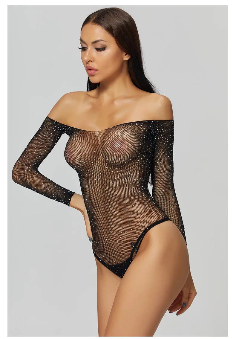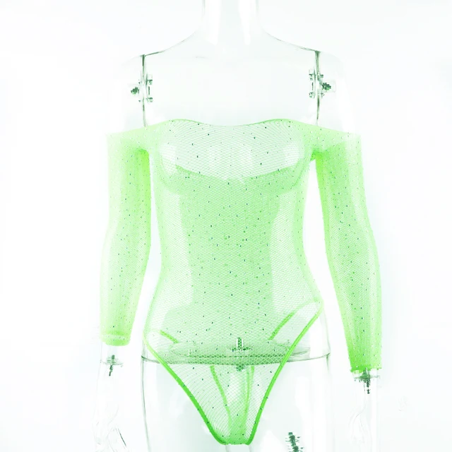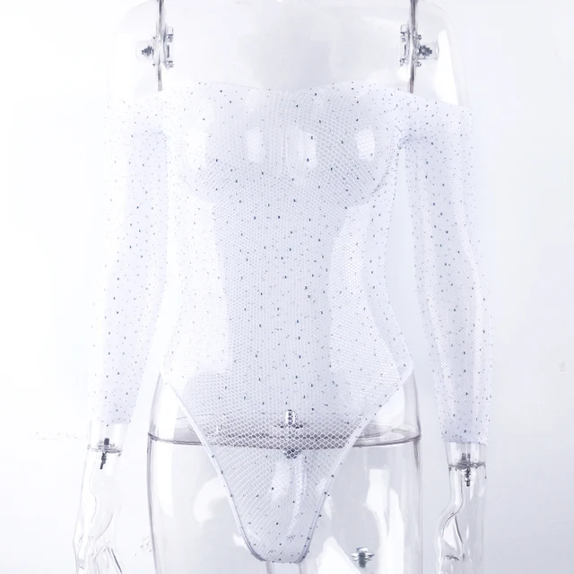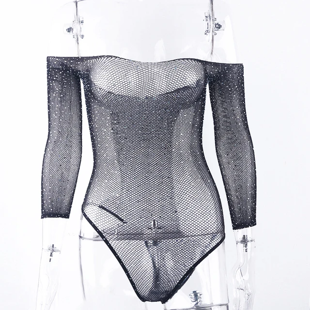 Женское блестящее боди Стразы с вырезом лодочкой Сексуальное Женское Сетчатое прозрачное облегающее боди с длинным рукавом и открытой спиной для клувечерние