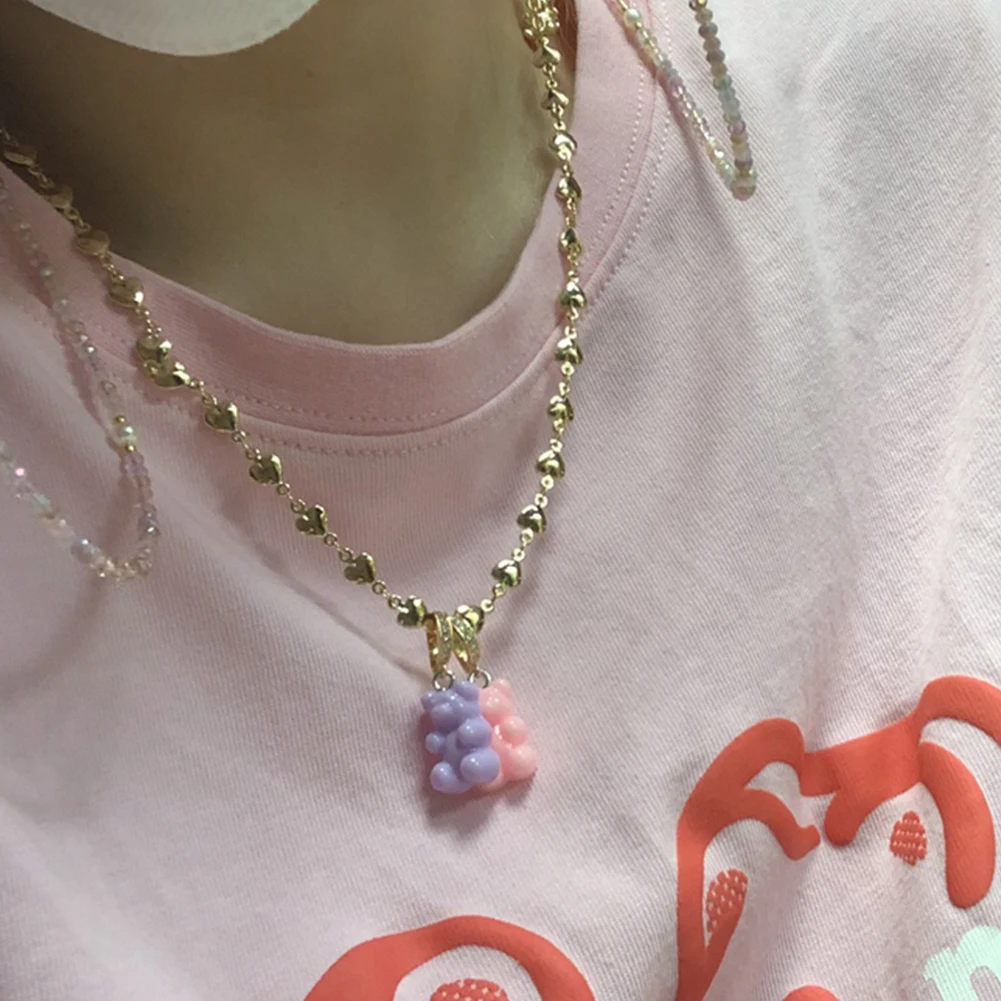 Модное милое Радужное мультяшное ожерелье с мини-медведем на цепочке до ключиц для женщин ожерелье с резиновыми мишками из Кубического циркония в форме сердца металлическое колье ювелирные изделия