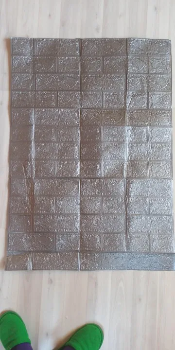 Отличное покрытие на стену, лепится на двухсторонний скотч или жидкие гвозди, для надёжности. Замечательно смотрится на стенах. На фото лист ещё не приклеен, поэтому выглядит немного неровно, после поклейки он ляжет идеально. Заказ пришёл быстро, продавцу большое спасибо за скорость и качество. Рекомендую!