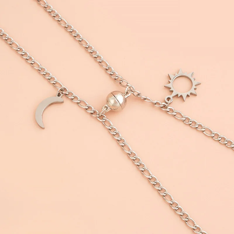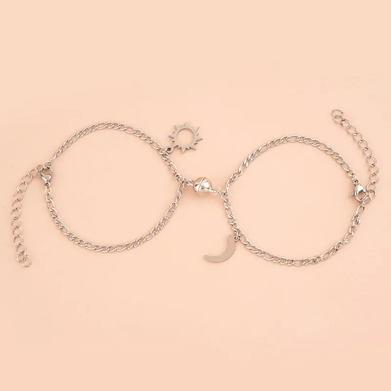Креативный магнитный браслет с двумя люминами, стальной кулон, Парные браслеты для магнитных ювелирных изделий, браслет с Луной и звездами