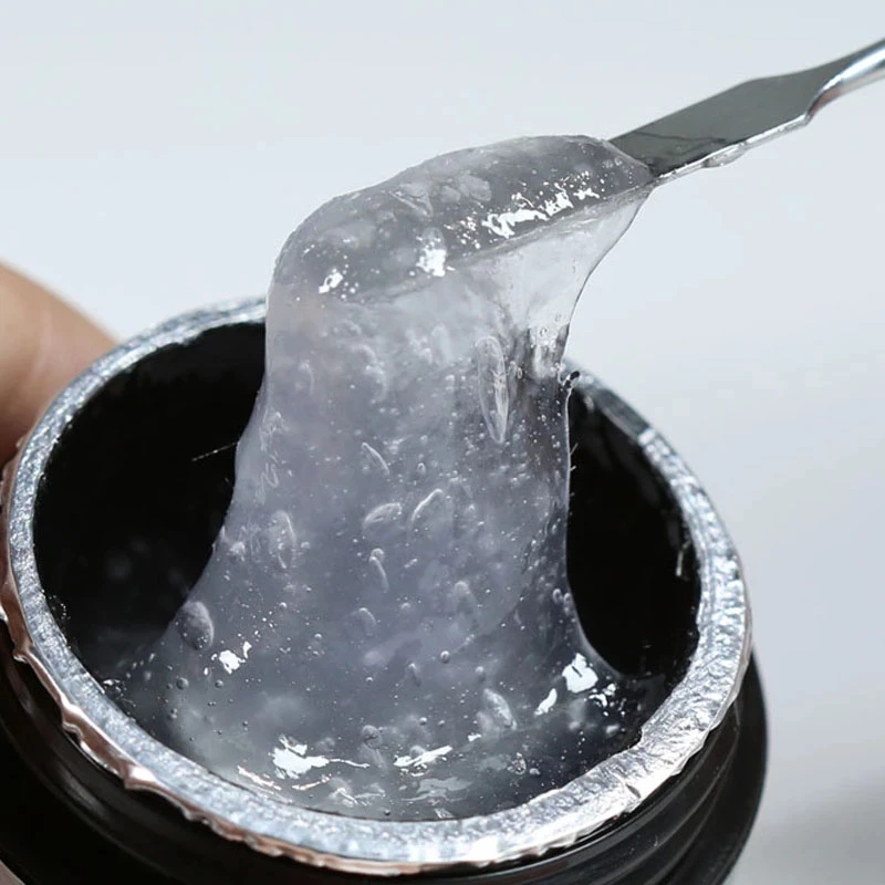 Волокнистый гель содержит стекловолокно, которое очень прочное и твердое После излечения.Прозрачная текстура, здоровая и свободная.И полный из стекловолокнаИ более жесткий, чем обычный гель-удлинительИ легко рботающимИ носит естественно на ногтях иИдеально подходит для накладок и скульптуры.