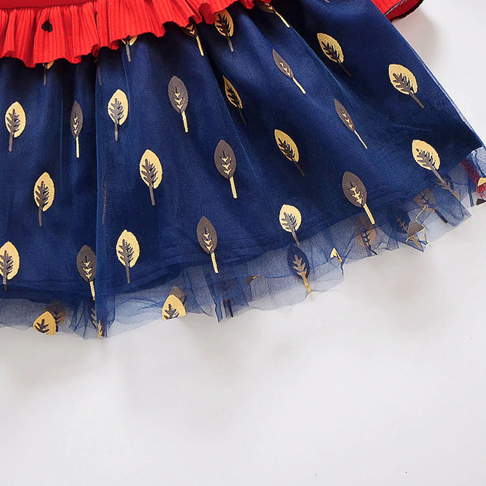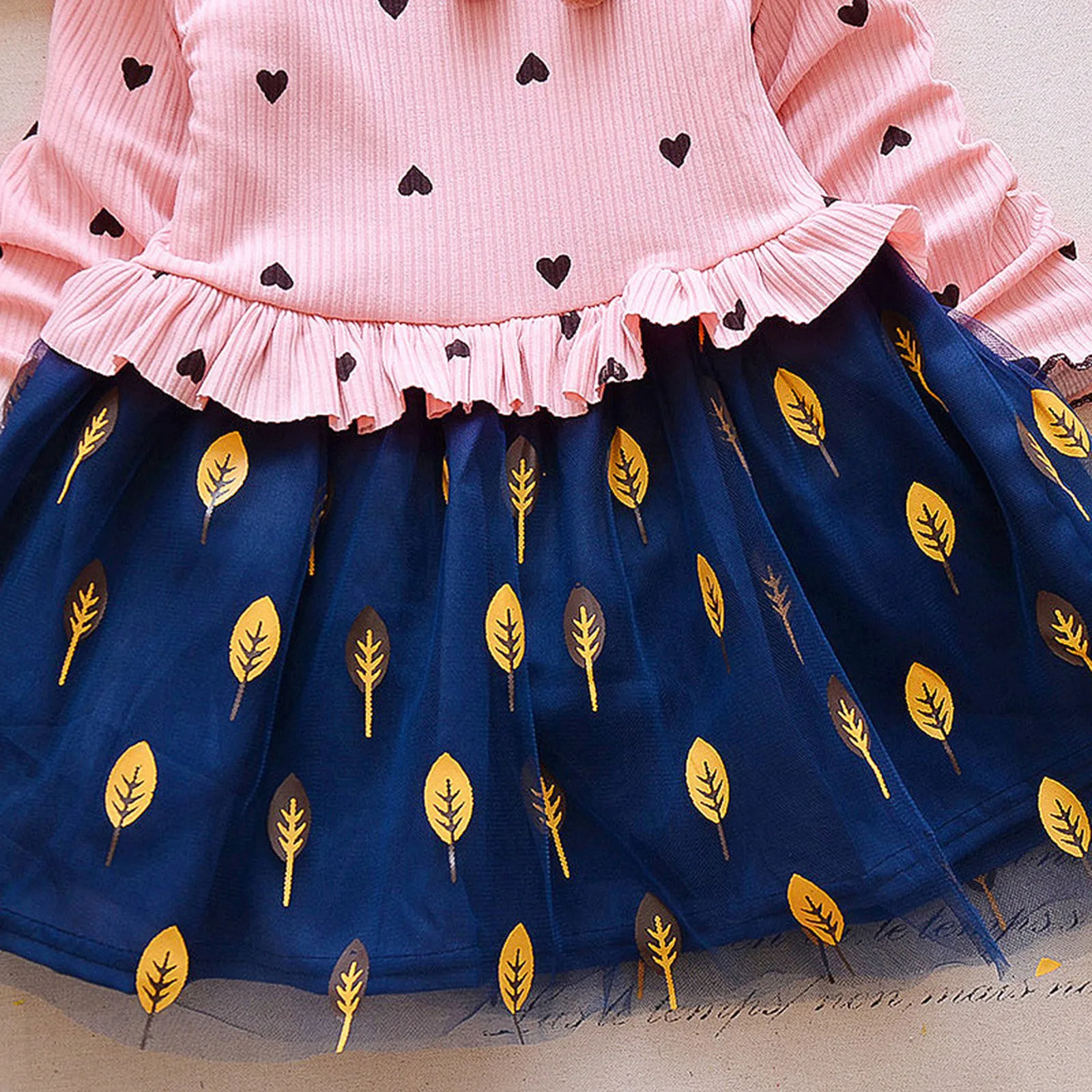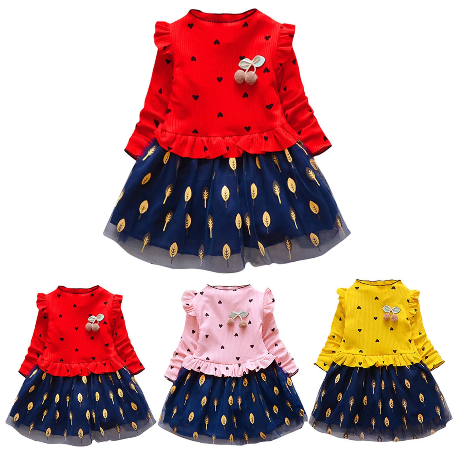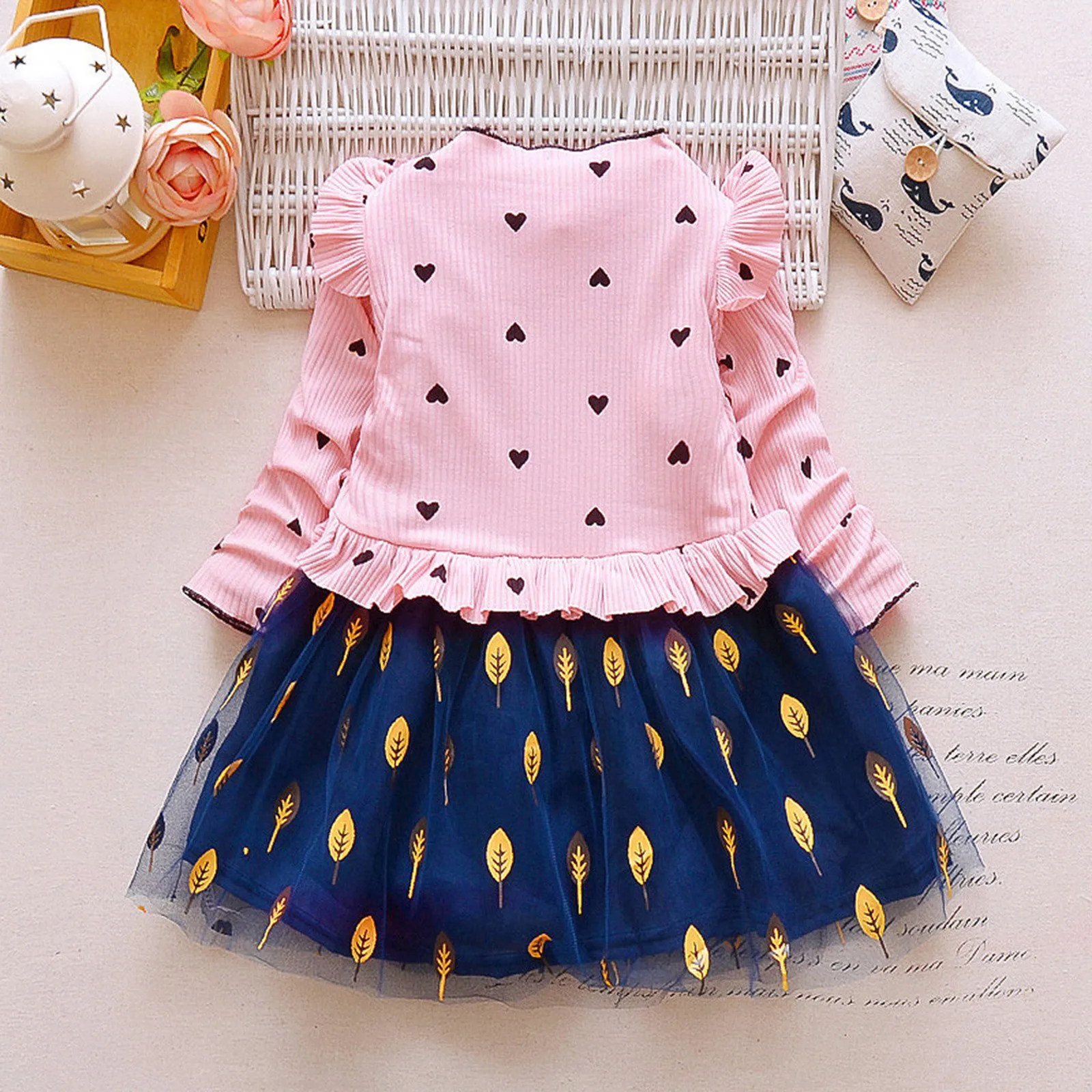 Платье принцессы с принтом в виде сердца для маленьких девочек, фатиновое праздвечерние платье с длинными рукавами и круглым вырезом, наряды для детей, рождественский подарок