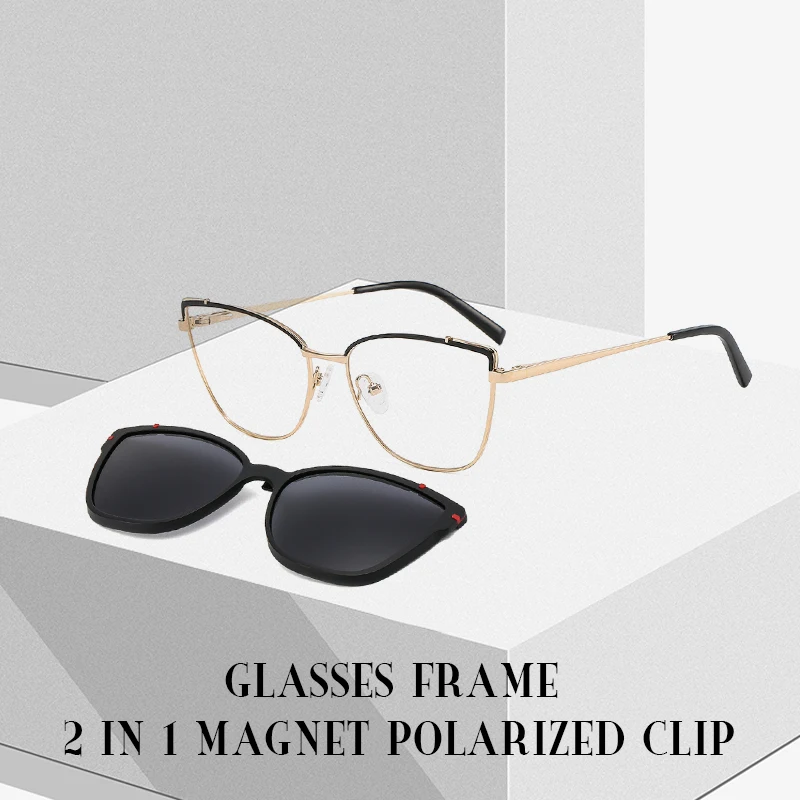 Женские поляризованные солнцезащитные очки 2 в 1, в металлической о...