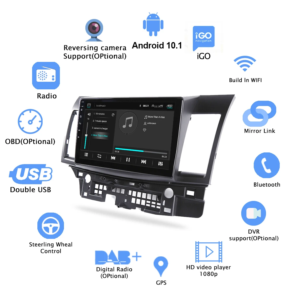Автомобильный мультимедийный плеер 2 Din Android 10,1, стерео радио для Mitsubishi lancer x 2007-2019, автомобильное радио, GPS-навигация, видео