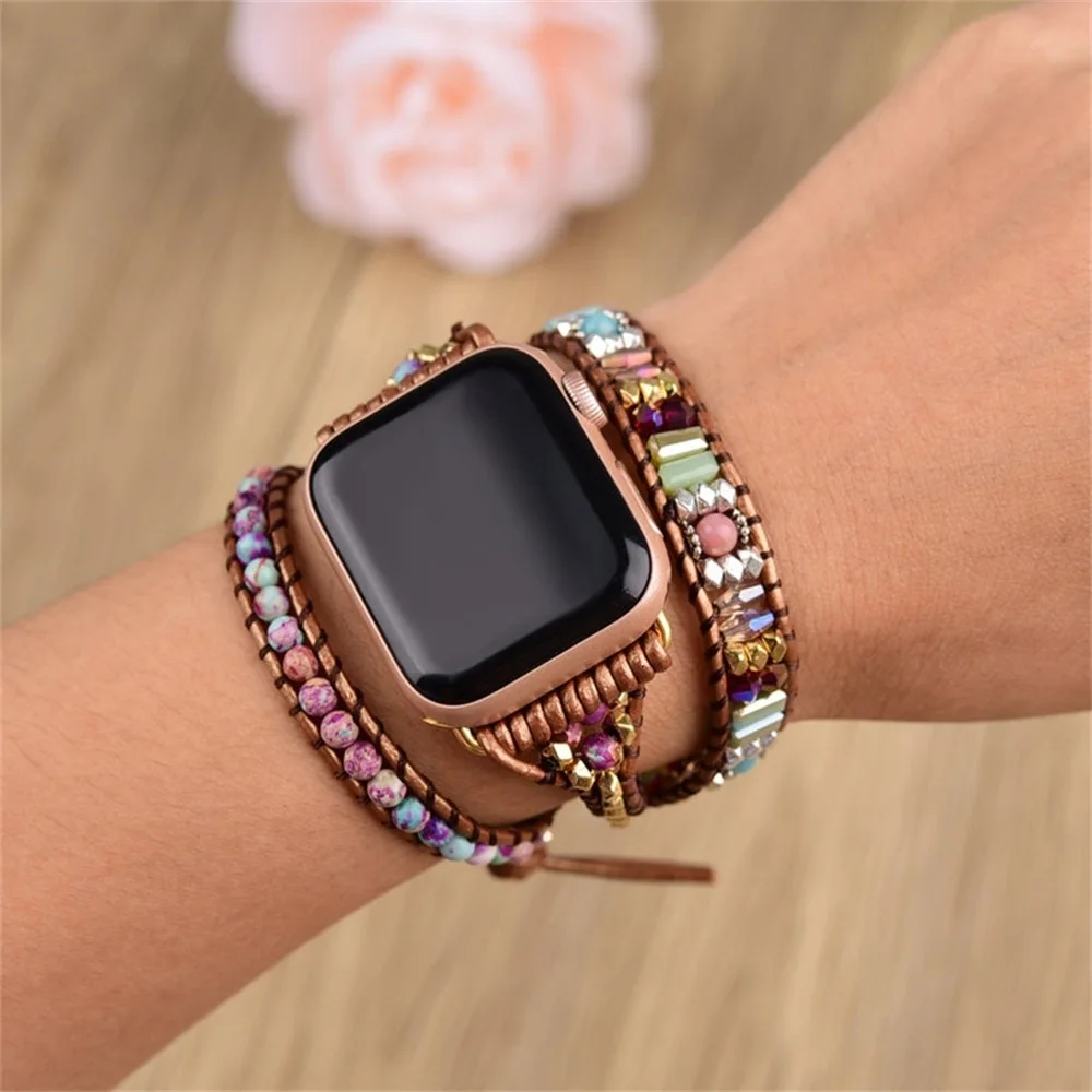 Ремешок Love Heart для Apple Watch Series 7 654321 SE, богемный каменный браслет для Iwatch 44 42 40 38 мм, браслет, браслет