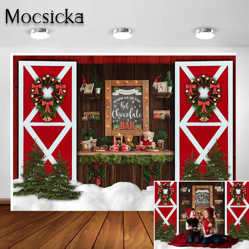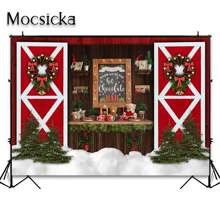 Mocsicka Рождественские фоны для фотосъемки сосновые деревья горячий шоколад бар вечерние дети семья фото фон фотосъемка