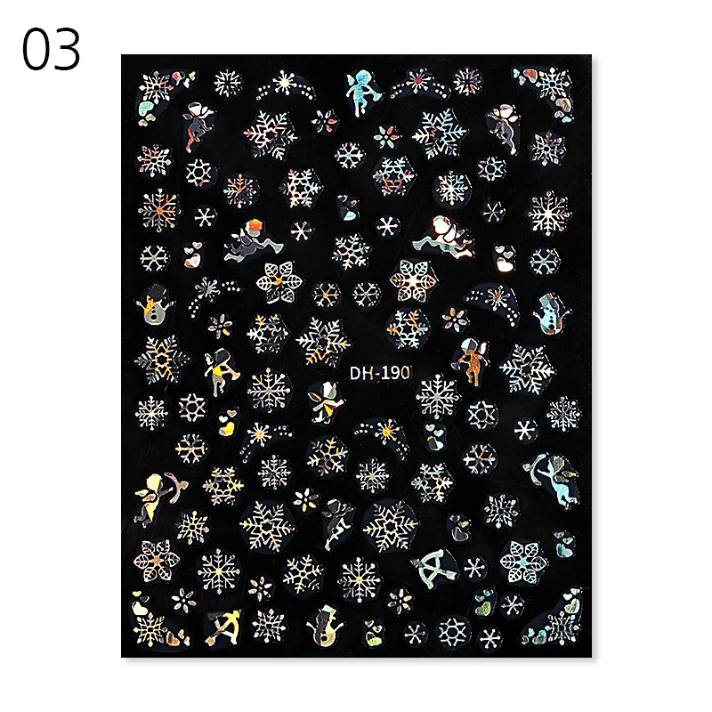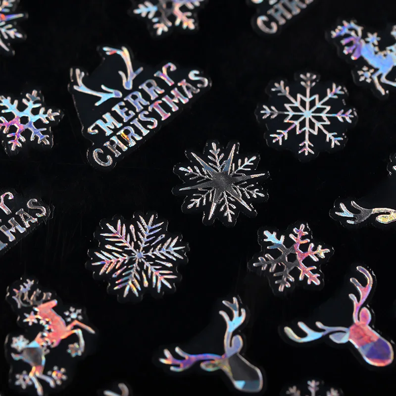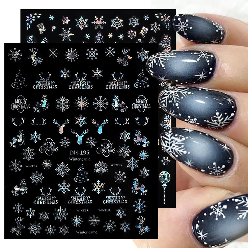 Рождественские 3D-Наклейки для дизайна ногтей, серебристые, бронзовые, блестящие, белые, разноцветные, геометрические, снежинки, зимняя фольга