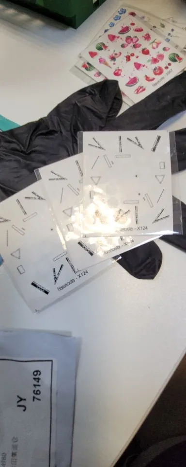 Доставка быстрая 15 дней, трек-номер отслеживался, правда объедененный с другой посылкой. Наклейки качественные и хорошо упакованные. Пока не пробовала делать маникюр с ними..
