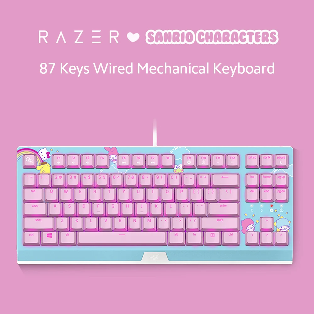 Оригинальная Проводная клавиатура Razer X Sanrio Hello Kitty Ограниченная серия 87 клавиш компактная игровая офисная механическая клавиатура с подсветкой