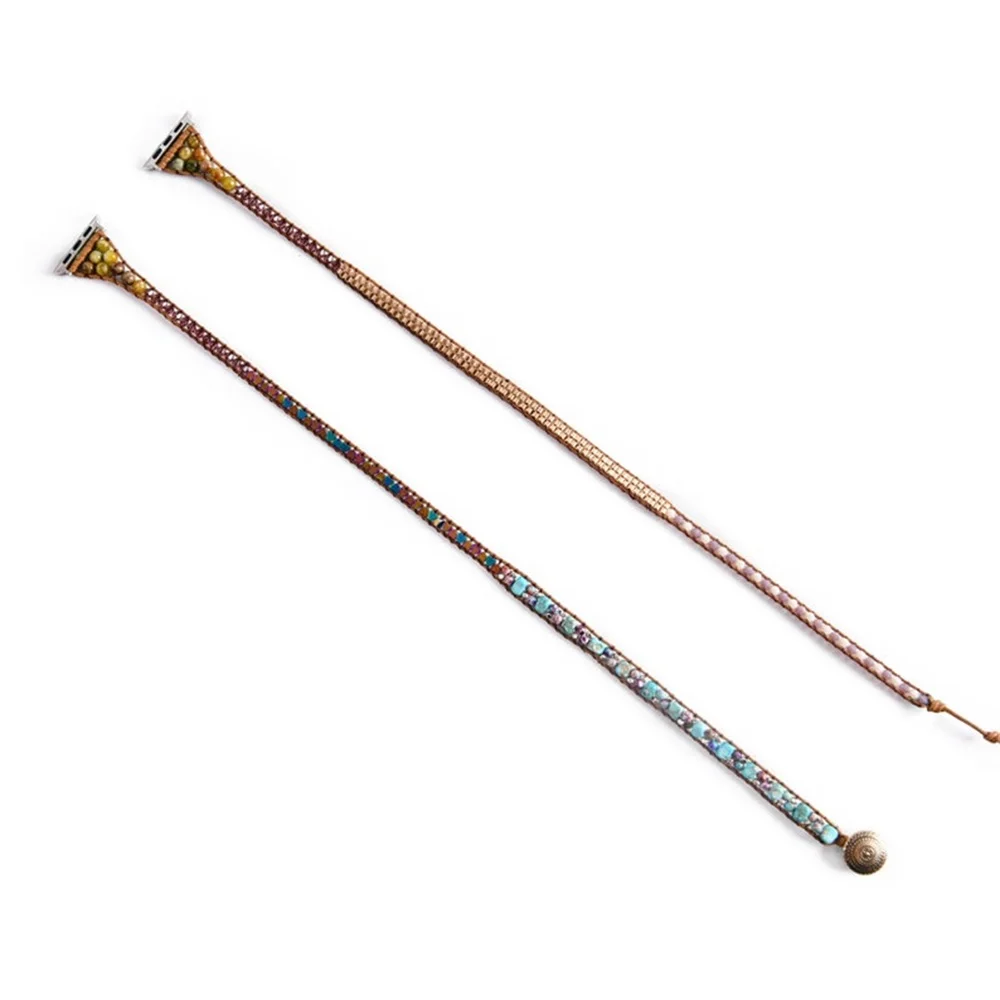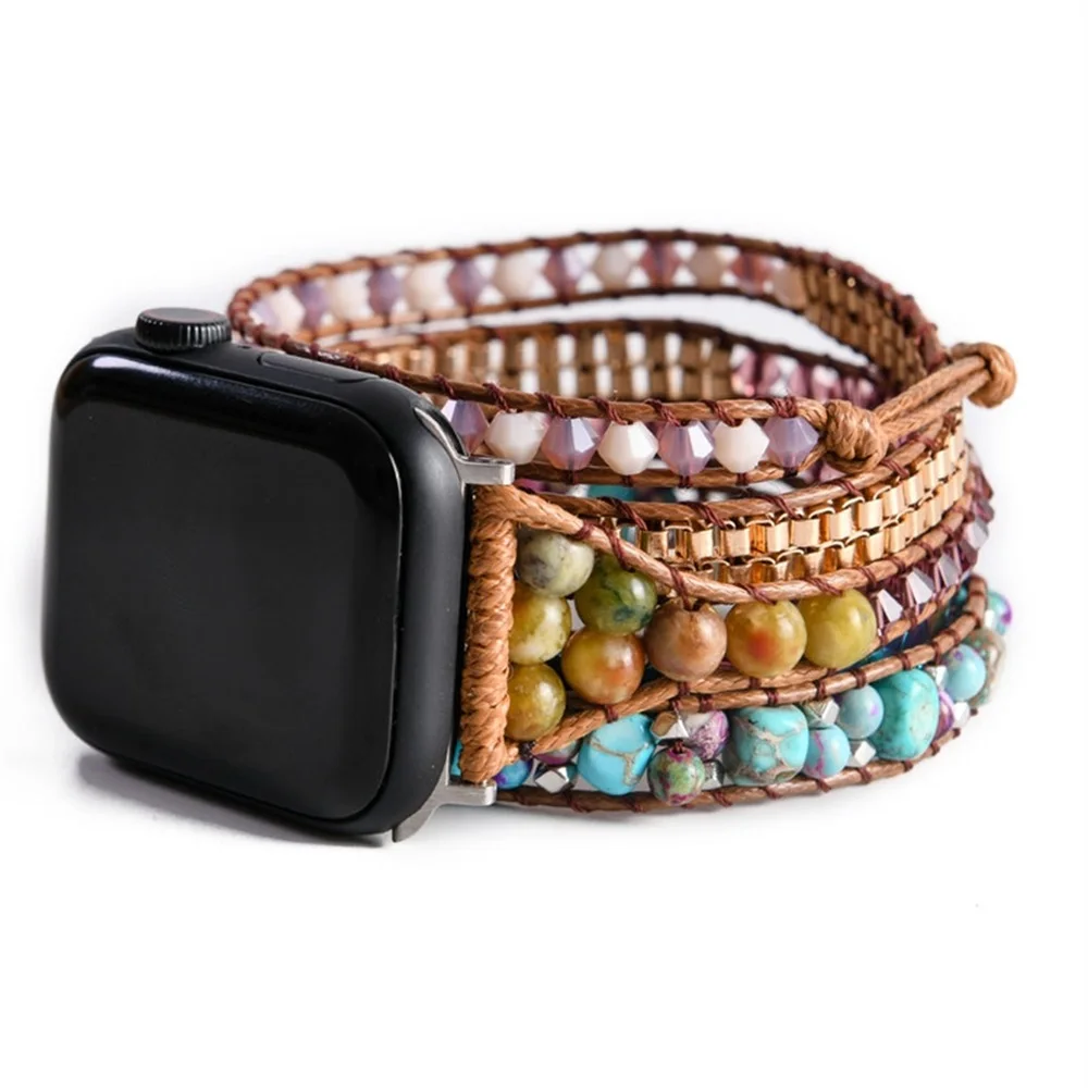 Ремешок в богемном стиле для Apple Watch Band 38 мм 42 мм, браслет из агата и бисера для Iwatch Series 7, металлический браслет в этническом стиле с сердечками