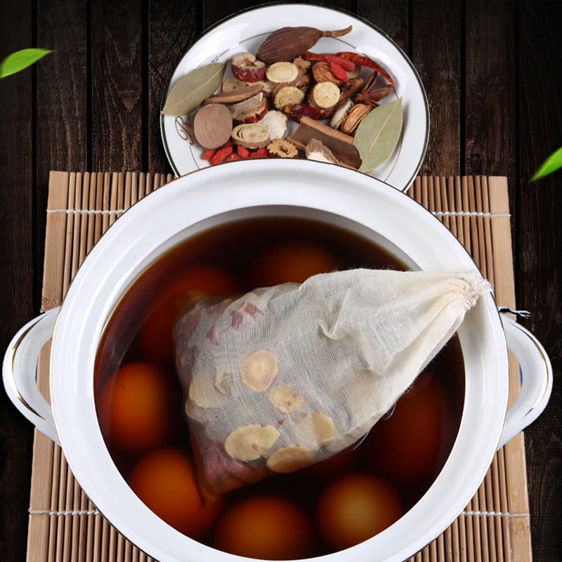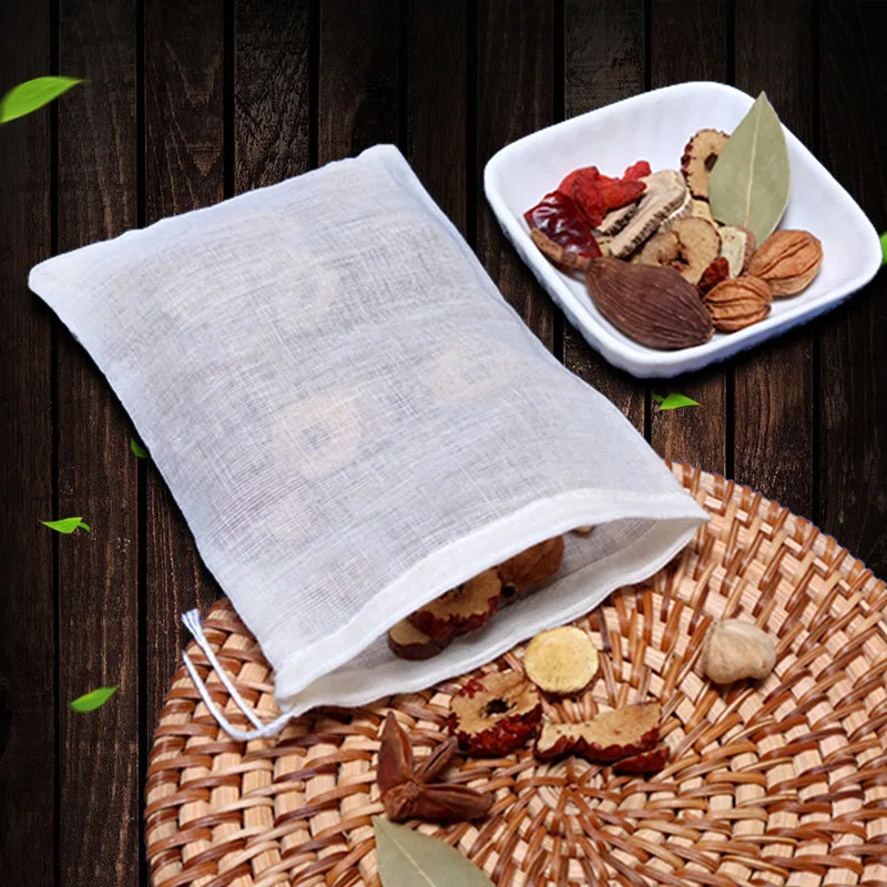Многоразовое муслиновое ситечко из чистого хлопка на шнурке для чая, пивоварения, разделения специй, пищевых фильтров, хлопковый нетоксичный чайный набор, фильтр-пакет