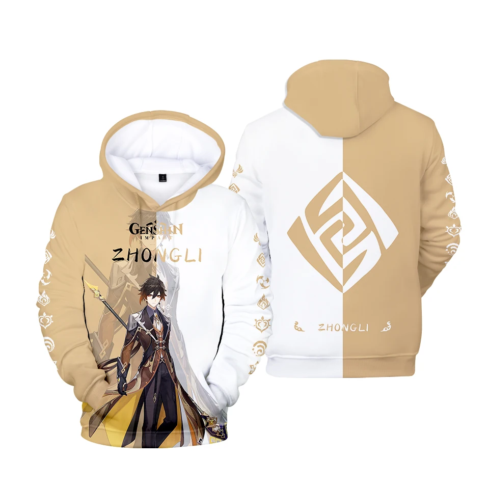Zhongli крутая игра Genshin ударопрочная 3D Толстовка Повседневная Мужскаяженская уличная одежда пуловер с длинным рукавом аниме кавайная детская одежда