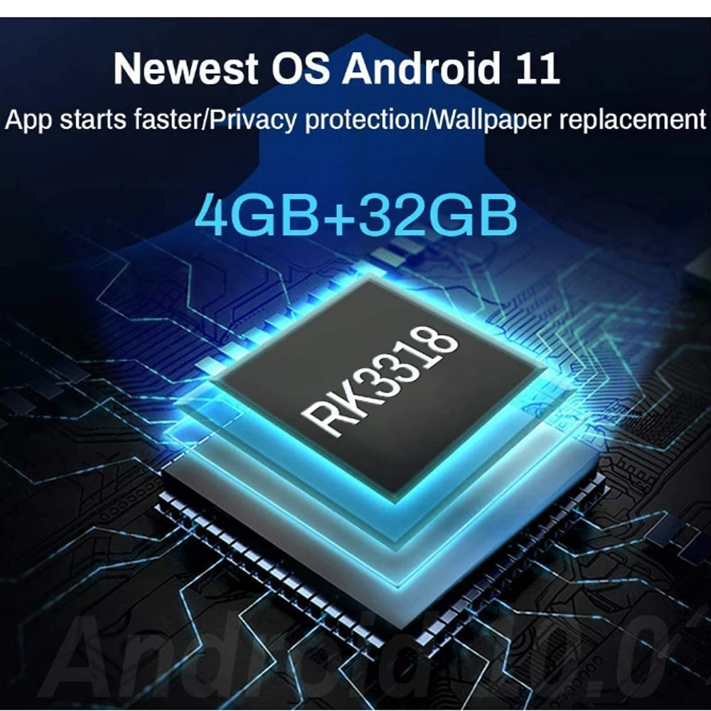 Технические характеристики оборудованияНабор микросхем: четырехъядерный 64 бит Cortex-A53 RK3318GPU:Penta-Core Mali-450Вспышка: EMMC 16/32 ГБ/64 ГБSDRAM:2 ГБ/4 ГБ DDR3Характеристики источника питанияИсточник питания: 5 В/2 А или 5 В/2 а постоянного токаИндикатор питания (светодиодный): Включение питания: синий; Режим ожидания: красный