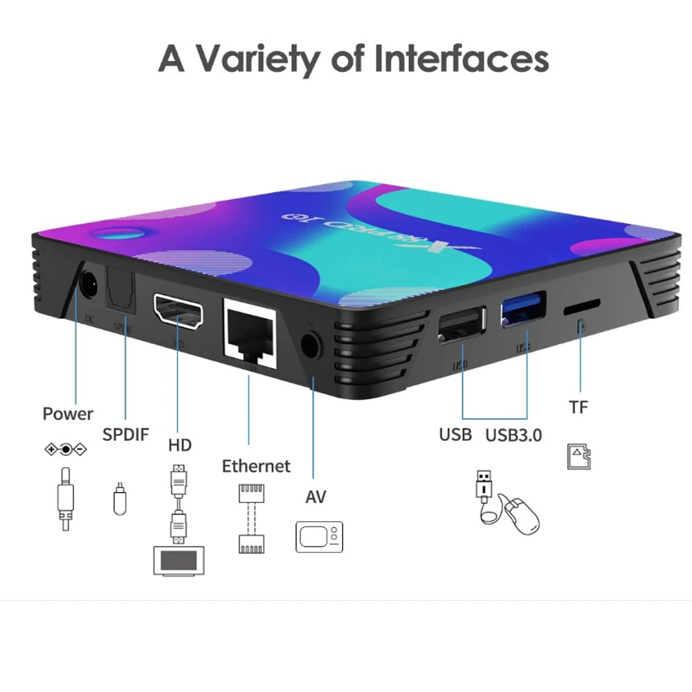 ОС: Android 11Поддержка декодера Формат: 4K VP9 видео декодер, H.265/H.264 видео декодер1080P другие декодеры видео (VC-1, MPEG-1/2/4, VP6/8)Поддержка медиаформата: Avi/Ts/Vob/Mkv/Mov/ISO/wmv/asf/flv/dat/mpg/mpegПоддержка музыкального формата: MP3/WMA/AAC/WAV/OGG/DDP/HD/FLAC/APEПоддержка формата фото: HD JPEG/BMP/GIF/PNG/TIFFHDR:HDR10 и HLG режимыUSB:1x Высокоскоростной USB 3,0 и 1 x высокоскоростной USB 2,0Кард-ридер: TF картыФайловая система HDD: FAT16/FAT32/NTFSПоддержка подзаголовка: SRT/SMI/SUB/SSA/IDX + USBВидеовыход высокой четкости: 4K (3840x2160 пикселей)OSD тип языков: английский/французский/немецкий/испанский/итальянский/и т. Д.LAN Ethernet:10/100 м Стандартный RJ-45Беспроводная связь: 2,4G и 5,8 GHz двухдиапазонный WifiSPDIF/IEC958: оптическийBluetooth: 4,0Мышь/Клавиатура: Поддержка Мышь и клавиатуры через USB; Поддержка 2,4 ГГц беспроводной Мышь и клавиатура через 2,4 ГГц USB донглHD:HD 2.0a для 4k @ 60HzAV: ПоддержкаТехнические характеристики программного обеспеченияФункции сети: KDMC18.1, Ne flix, Vu du, Sk ype чат, Pic asa, Fli cker, Yo utube, Fa cebook, онлайн фильмы и т. Д.Другие особенности: бесплатный поиск в Интернете, тысячи приложений android, много видов игр и т. д.Сертификация: CE,FCC,ROHS