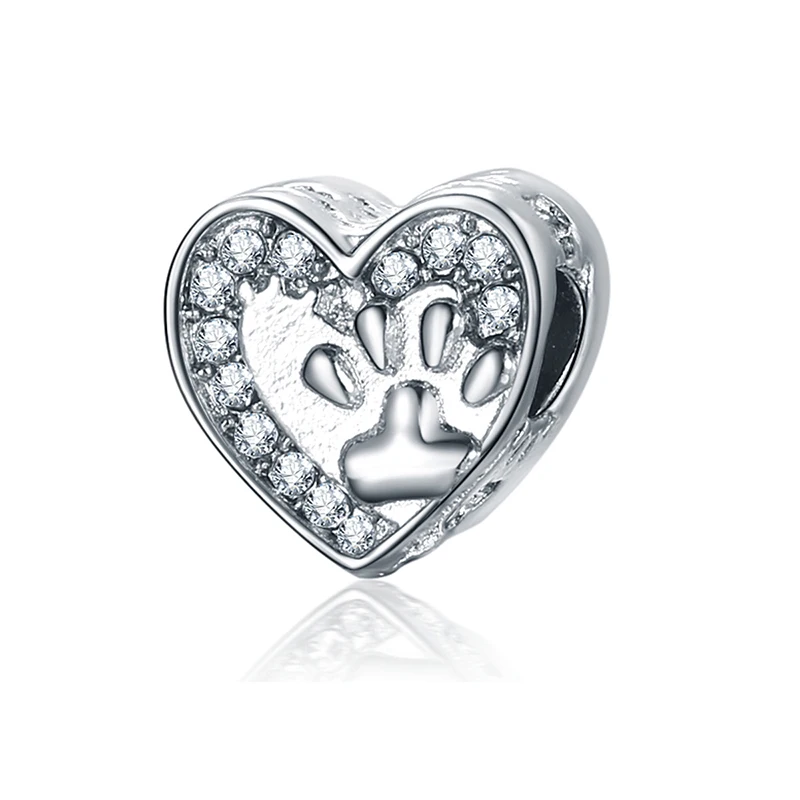 Бусина-Шарм Собачья лапа серебристого цвета, 45 видов