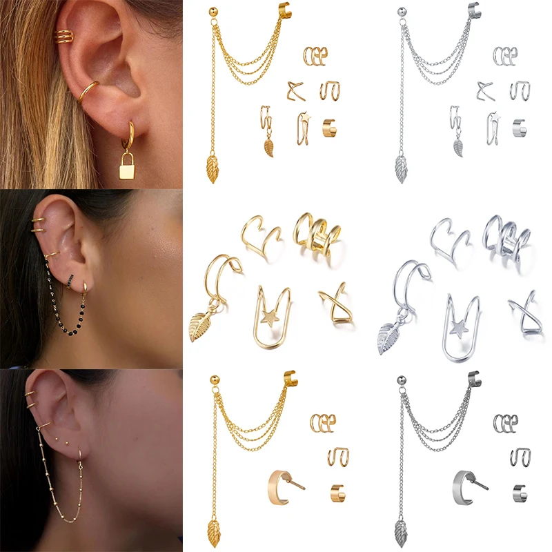 Набор каффов для ушей для женщин и девочек, простой: золото, серебр...