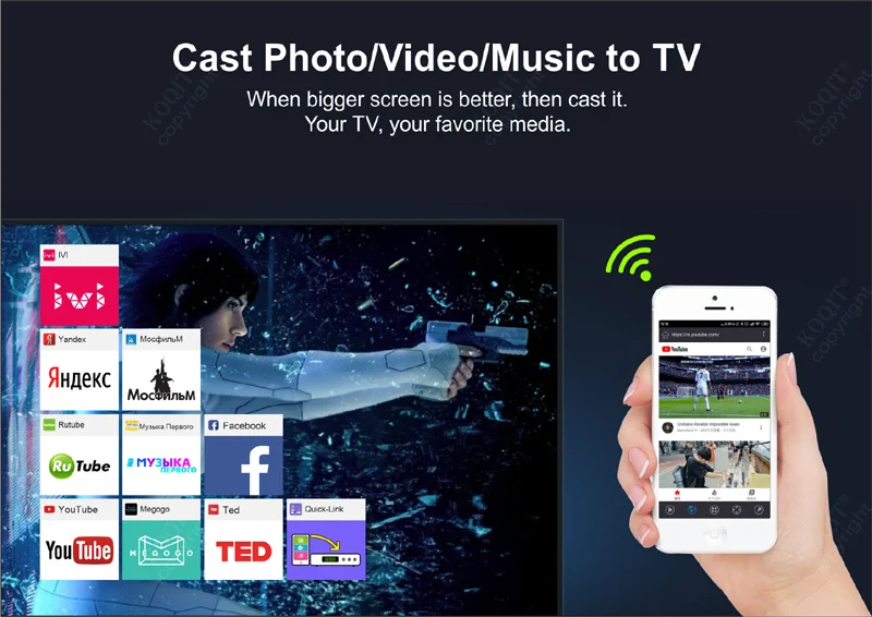 • Встроенная ТВ-палка MeeCast, может нажимать веб-/местные видео и изображения и зеркальное отображение экрана телефона/планшета на большой телевизор, VR пульт дистанционного управления ТВ-приставкой...