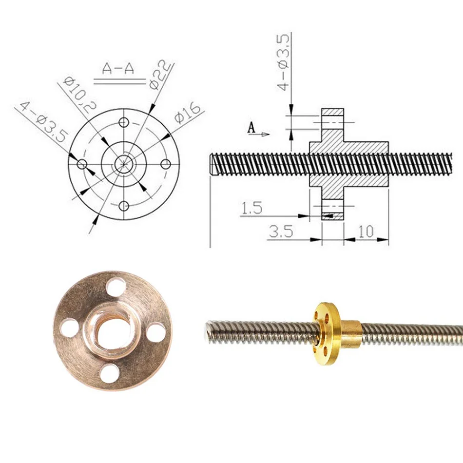 Свинцовый винт T16, трапециевидный винт с латунной гайкой 100 мм, 1...
