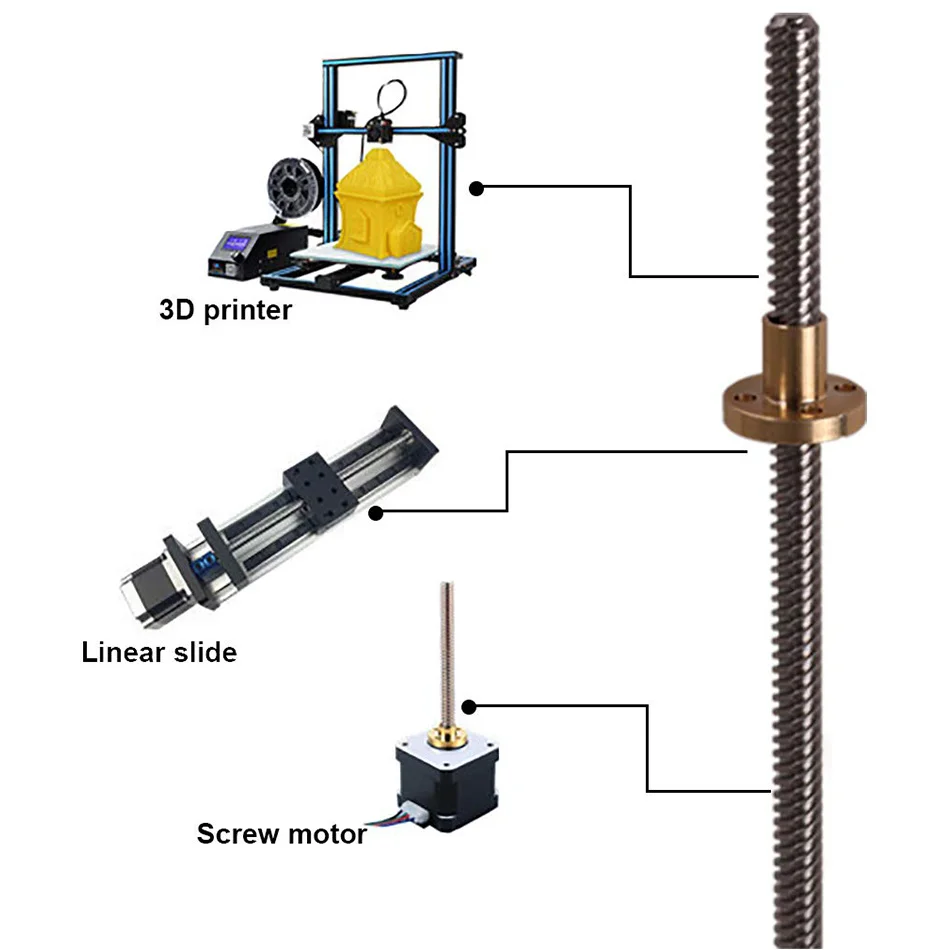 Свинцовый винт для 3D-принтера, 8 мм, шаг 2 мм, вывод 2 мм, 200 мм, 250 мм, 300 мм, 350 мм, 400 мм, 450 мм, 500 мм, с гайкой для 3D-принтера Reprap