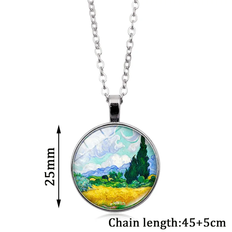 Женское ожерелье с подвеской Ван Гога, с изображением звездной ночи, Густава Климта, поцелуя, бижутерия со стеклянными кабошонами