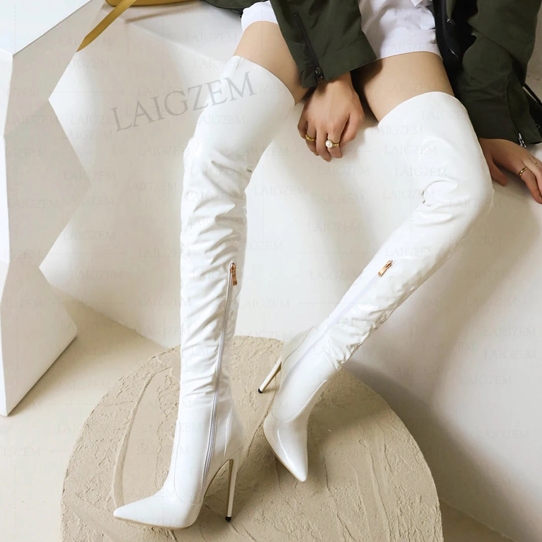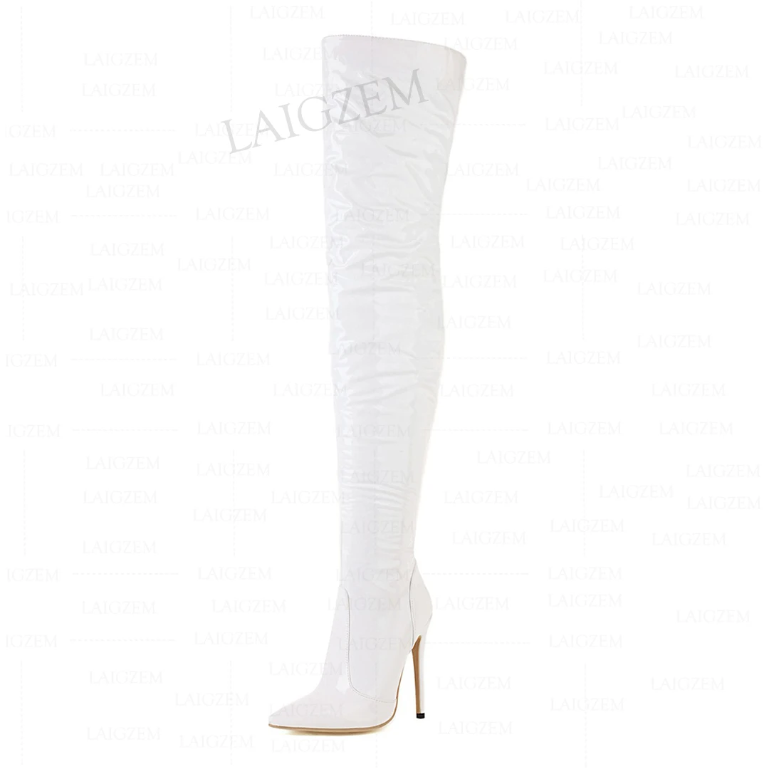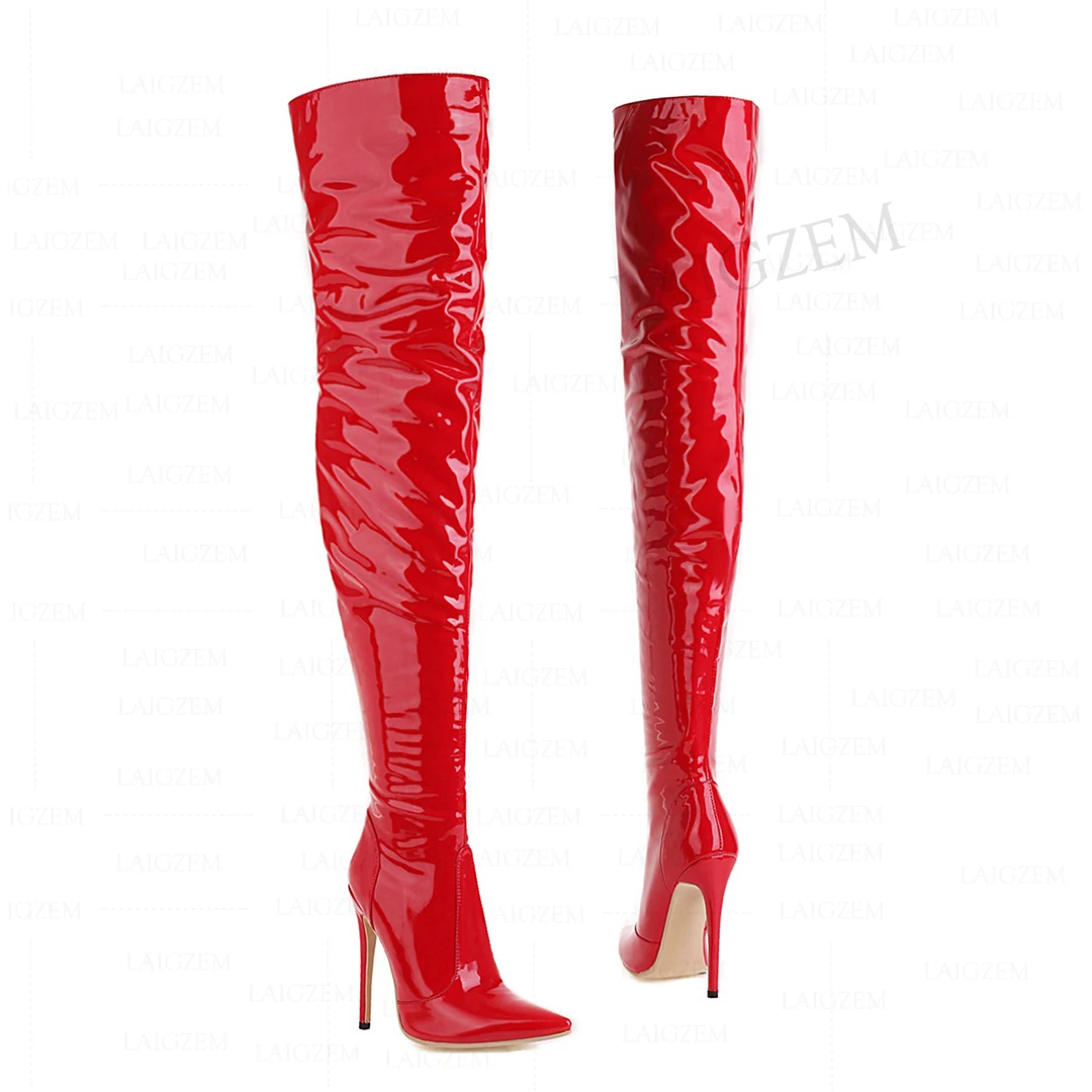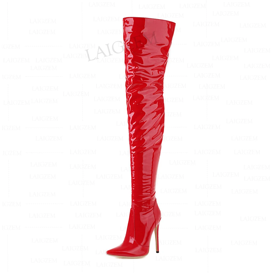 LAIGZEM Женские Сапоги выше колена с острым носком; Блестящая Защит...
