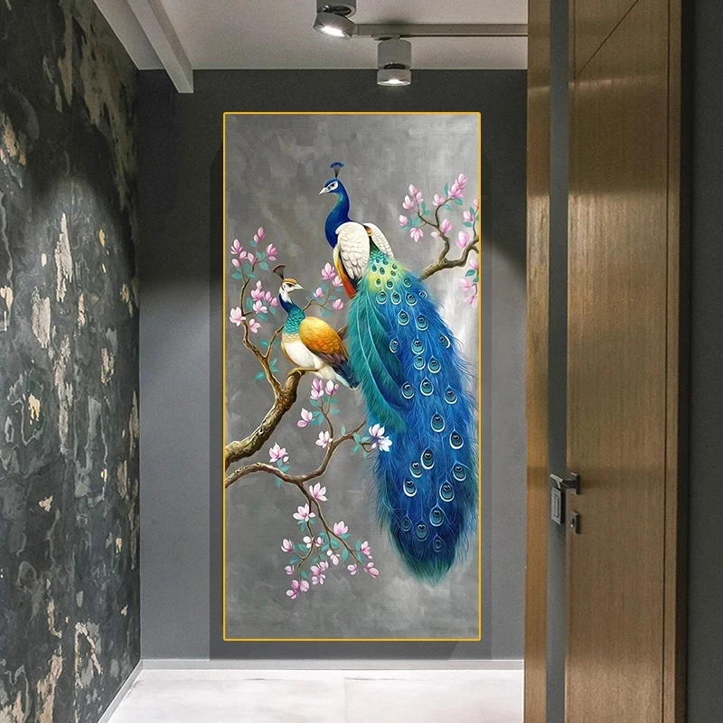 Картины на холсте с животными в скандинавском стиле, современные настенные картины с изображением павлина, украшение для гостиной