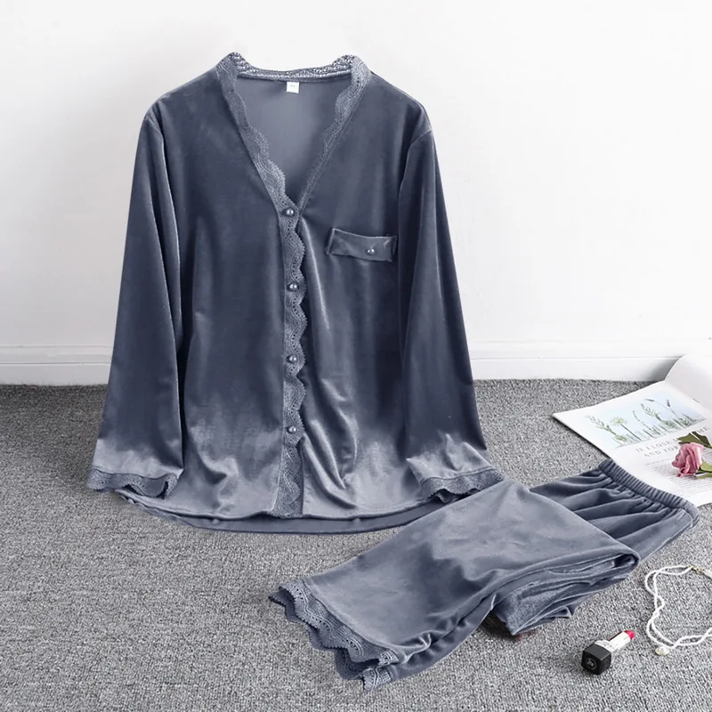 Пижамный комплект из 2 предметов домашняя одежда в Корейском стиле Осень-зима Модный золотой бархатный женский свободный кардиган с длинными рукавами большого размера