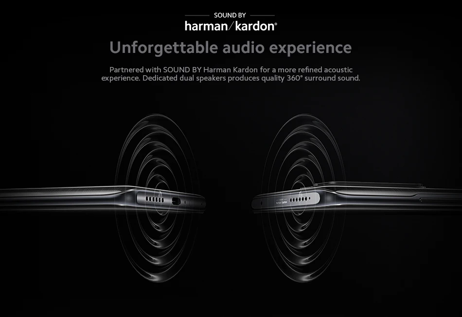 Партнерство со звуком от Harman Kardon для более утонченного акустического опыта. Выделенные двойные динамики обеспечивают качественный объемный звук на 360 °.
