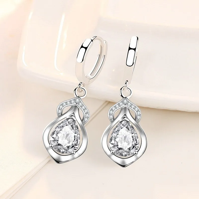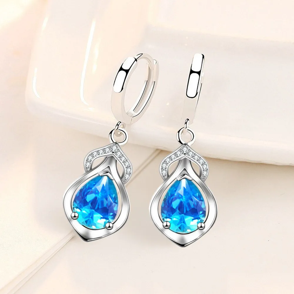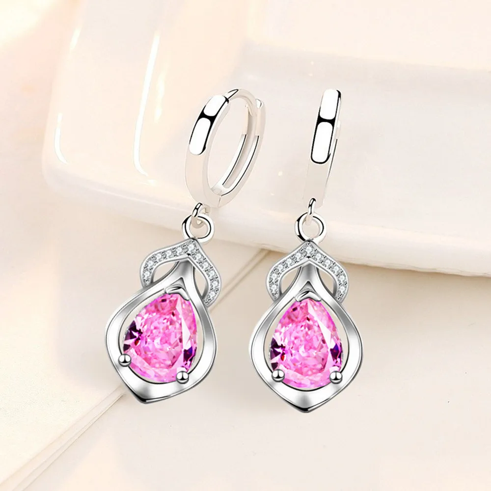 Женские серьги из серебра 925 пробы с голубым и розовым кристаллом