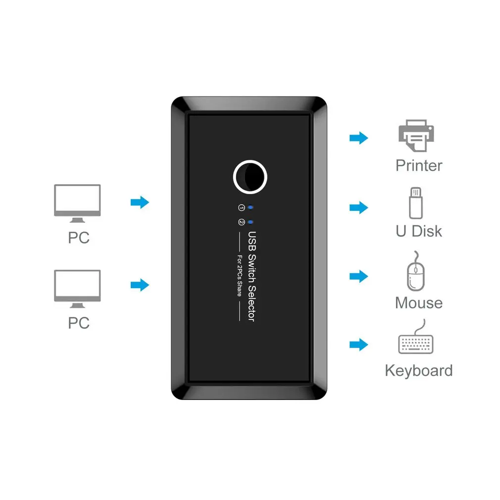 В наличии KVM-переключатель USB 3,0, переключатель, 2 шт., совместное использование 4 устройств USB 2,0 для клавиатуры и мыши, сканер, принтер, Kvm-переключатель, концентратор
