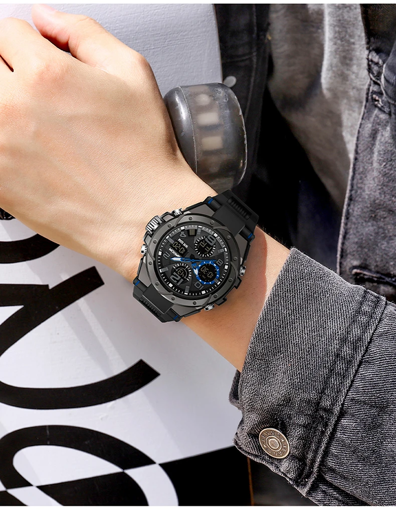 Часы мужские кварцевые с двойным дисплеем, водонепроницаемые, с син...
