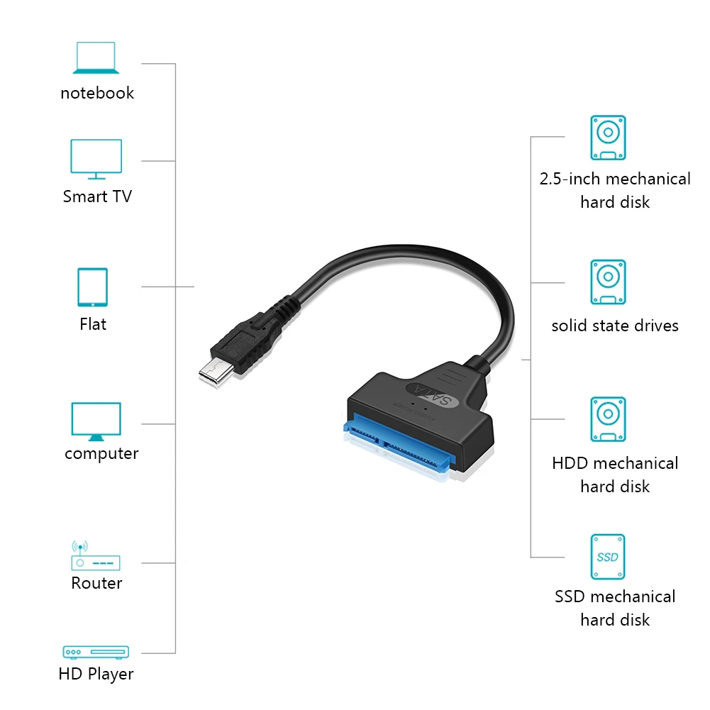 Кабель для жесткого диска 2,5 дюйма, Sata, USB 3,0, 2.0 Type-c, под...