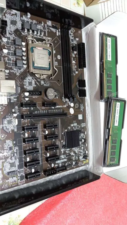 Описание:Высокая производительность и высокая надежность, долговечная Замена для старого или поврежденного, больше не нужно беспокоиться о том, чтобы не найти правильные аксессуары.Быстрый запуск, загрузка и передача файлов.Низкое энергопотребление, тихий, надежный и прочный.Эффективно уменьшает помехи интерфейса и потери провода, чтобы обеспечить надежность данных, чтобы повысить эффективность работы.Так что питание основной платы не зависит от внешних помех.Спецификация:Наименование товара: материнская плата BTCЦвет: черныйМатериал: PCB + металлРазмер: 29,5x19 смТип памяти: DDR4Слот для памяти: 2 × DDR4Частота: 2133/2400/2800/3000 МГцПамять: максимум 16 гНабор микросхем: Intel B250Тип гнезда ЦП: LGA 1151Разъем питания: 1*4pin, 1*24pinРежим питания: 3 фазы, 2 гнезда вентилятора ЦПСлот расширения:1 * графический слот PCI-E X1611 * PCI-E X1 графический слот2 * USB2.0 булавки1 * USB3.0 pin1 * COM pin2*4p квадратный порт питания4 * порт SATA3.0Порт ввода/вывода:2 * PS/2 порта клавиатуры и мыши универсальный порт1 * RJ45 100 м Ethernet порт1 * DVI выход высокой четкости1 * VGA2 * Порт USB 3,04 * USB 2,0 портFeature1: скорость с 12 разъемами PCIe и только одним разъемом питанияОсобенности 2: разделяет 12 слотов PCIe на 3 группыFeature3: 5X Защита III аппаратный уровень гарантии с безопасным слотным ядром.Feature4: защита LAN и защита от перенапряженияFeature5: обнаружение состояния слота PCIeFeature6: поддерживает до шести портов USB 3,0Feature7: поддерживает до шести портов SATA 6 Гбит/с, скорость полосы PCIe 3,0CPU:G3900 SR2HV 2,80 GHZ LGA 1151Описание:Многоядерный многопоточный процессор.Стабильная работа и хорошая совместимость.2 м кэш, что делает его лучше, чтобы справиться с высокой нагрузкой.Низкоэффективный процессор, низкое тепловыделение, подходит только для материнской платы горнодобывающей машины.Цвет: серебристый + зеленыйМатериал: монокристаллический кремнийРазмеры: 37,5*37,5 ммМодель: G3900Применимый Тип: Рабочий столСерия процессора: двухъядерный процессор CeleronПроизводственный процесс: 14 нанометровНазвание основного кода: SkylakeАрхитектура ЦП: SkylakeТип разъема: LGA 1151Процессор частота: 2,8 ГГцКоличество ядер: двухъядерныйКоличество нитей: двойная нитьКэш уровня 3: 2 МбСпецификация шины: DMI3 8GT/sТепловая мощность (TDP): 51 ВтПоддержка максимальной памяти: 64 ГБТип памяти: DDR4 1866/2133 МГц, DDR3L 1333/1600 МГц @ 1,35 вМаксимальное количество каналов памяти: 2Максимальная пропускная способность памяти: 34,1 ГБ/сек.Поддержка памяти ECC: ДаВстроенная графика: Intel HD graphics 510Основная частота видеокарты: 350 МГцМаксимальная динамическая частота видеокарты: 950 МГцDDR4 4/8 ГБ модуль памятиУпаковочный лист:1 х материнская плата BTC1 x процессор G3900