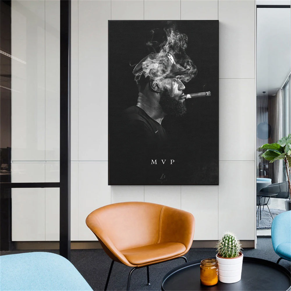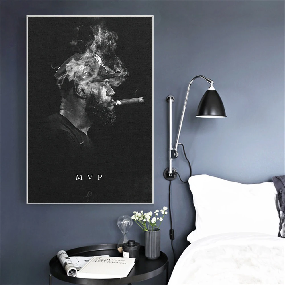 Современный портрет художественный Декор Джеймс курить сигару плакат картина баскетбольная звезда холст печать настенное искусство для дома мужская пещера подарок декор