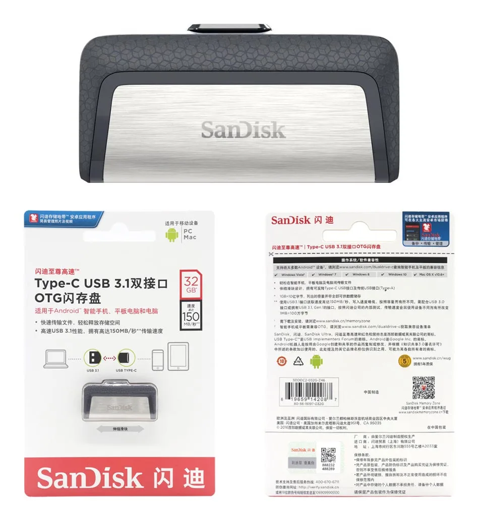 Флеш-накопитель SanDisk SDDDC2, 100% дюйма, Micro USB 3,1, 128 ГБ, 264 ГБ
