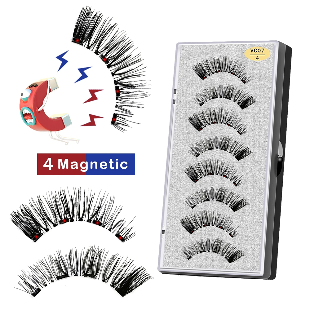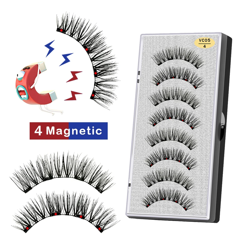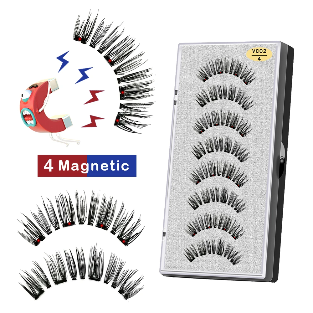 3D Магнитные ресницы с 4 магнитами, 8 шт., натуральные норковые ресницы ручной работы, многоразовые магнитные Накладные ресницы с пинцетом