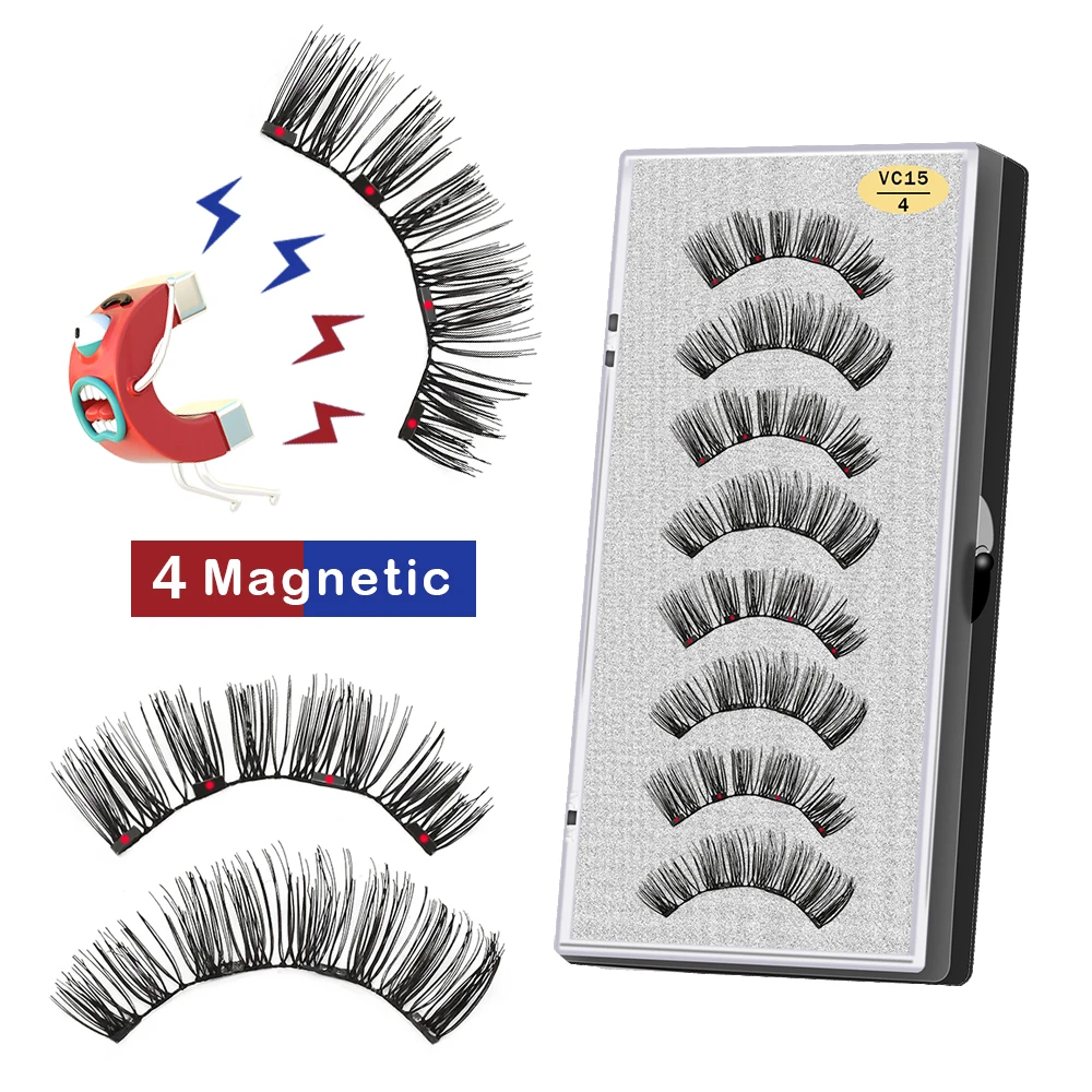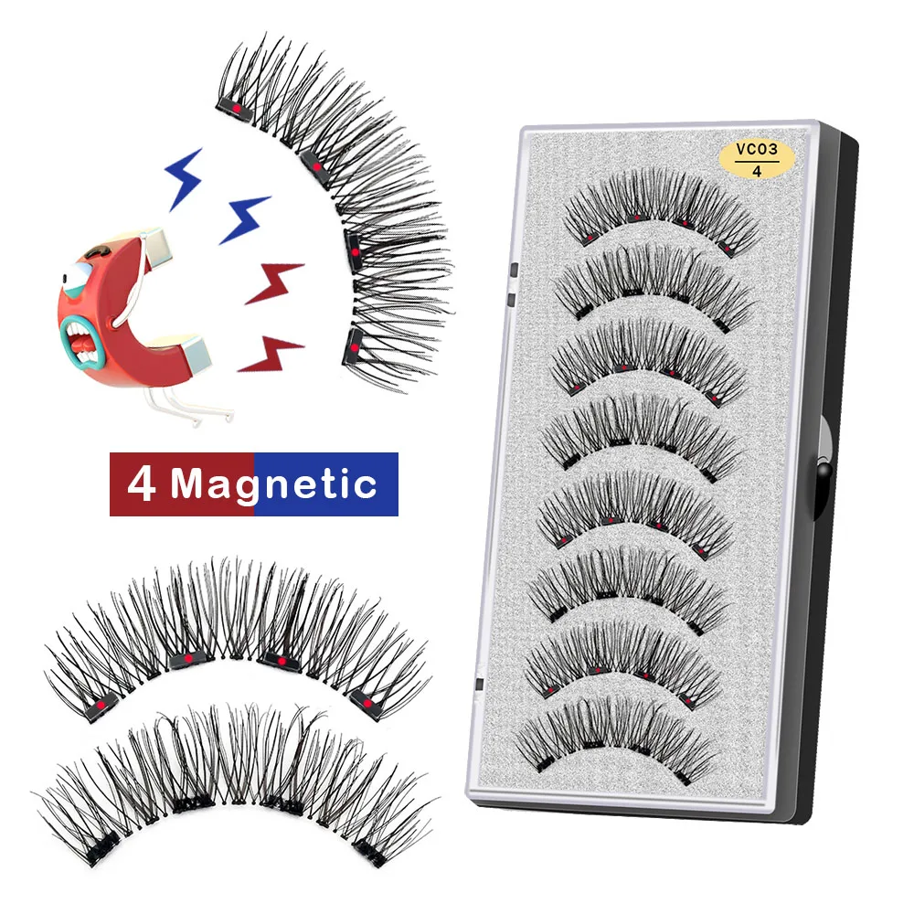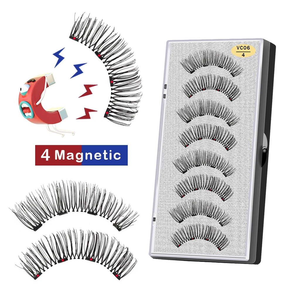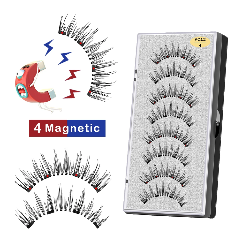 3D Магнитные ресницы с 4 магнитами, 8 шт., натуральные норковые ресницы ручной работы, многоразовые магнитные Накладные ресницы с пинцетом