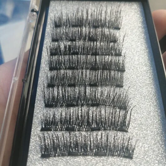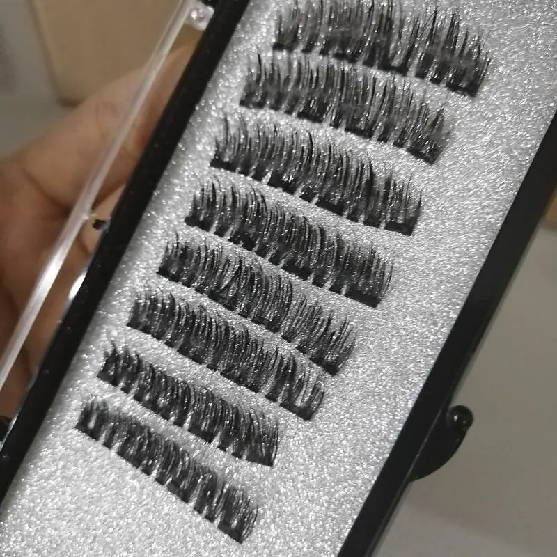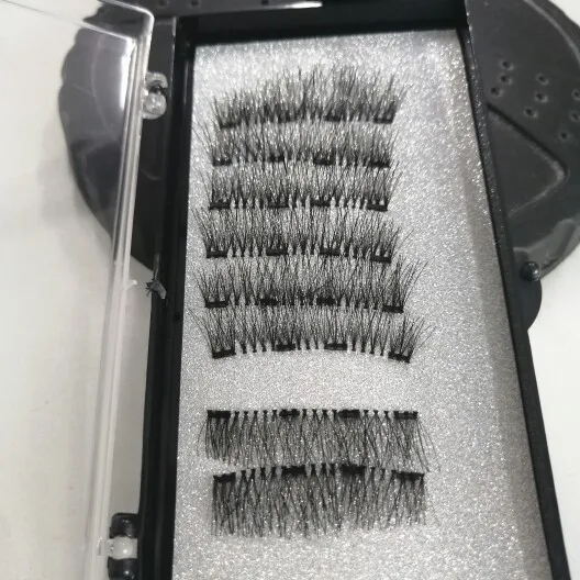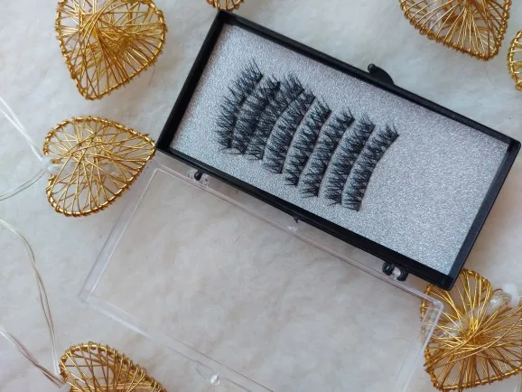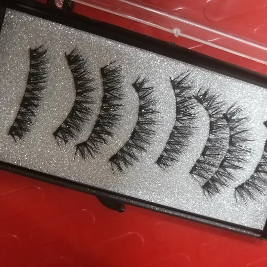 Классные реснички, в упаковке 8 штук с 4 магнитами. Реснички пришли за 2 недели в черной коробочке с пинцетом. На коробке есть мини-инструкция по применению в виде картинок и подробная информация о продукте сзади.Все аккуратно упаковано в пластиковой подставке, ресницы так вообще примагничены к специальным магнитам чтобы не теряли форму. Реснички плотно сидят на магнитной полоске, чтобы снять лучше тянуть не за сами ресницы, а за основу, чтобы ничего не повредить. Ресницы крепятся к тонким металлическим пластинкам, тонкие, не жесткие, достаточно длинные и пушистые. Очень хорошо подошли моей форме глаз - основание не длинное, не короткое, самый раз. Рекомендую!