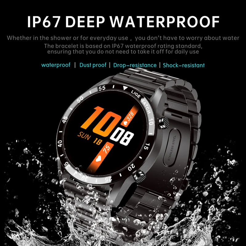 Смарт-часы LIGE мужские водонепроницаемые (IP67) с сенсорным экраном и Bluetooth