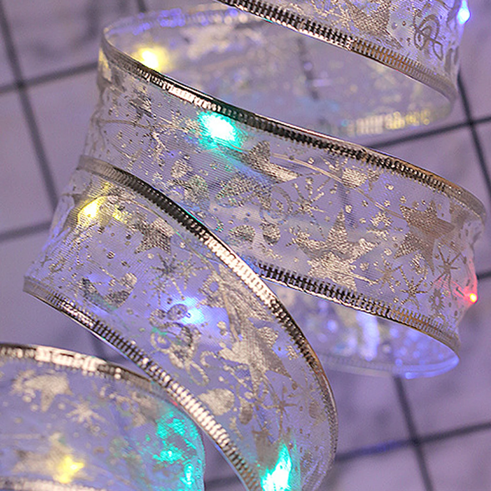 Рождественская лента, банты, двухслойные сказочные гирлянды со свет...