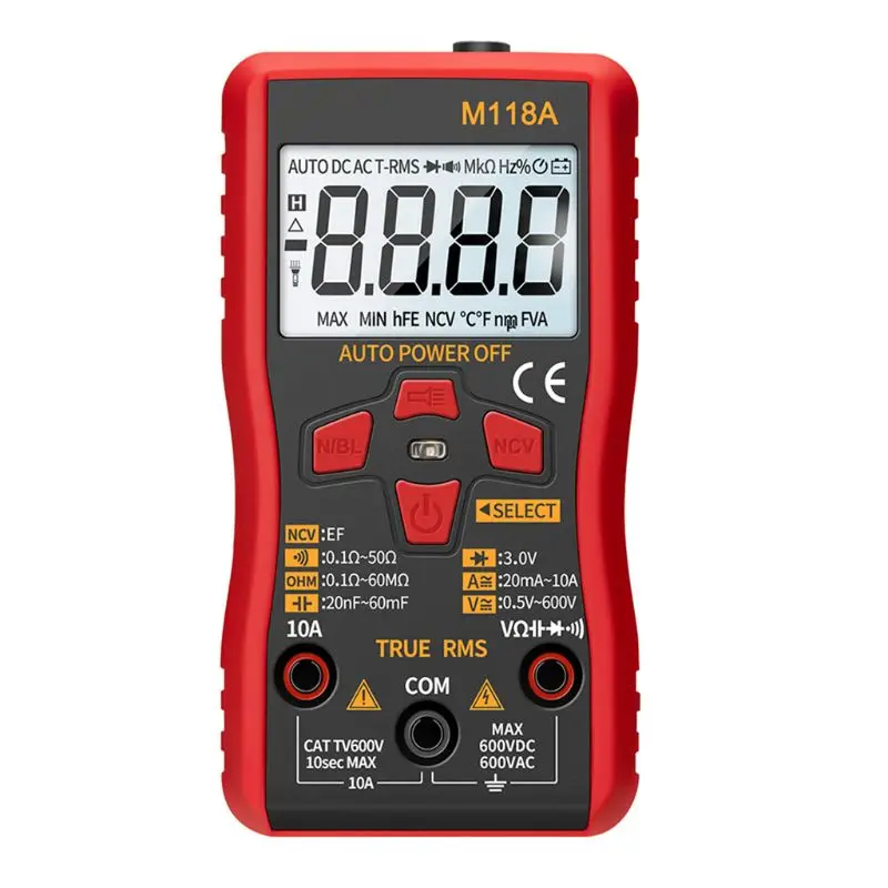 Цифровой мультиметр M118A, 6000 отсчетов, автоматическое определение диапазона, True среднеквадратичный тестер AC DC транзистор с NCV, фонарик для хранения данных