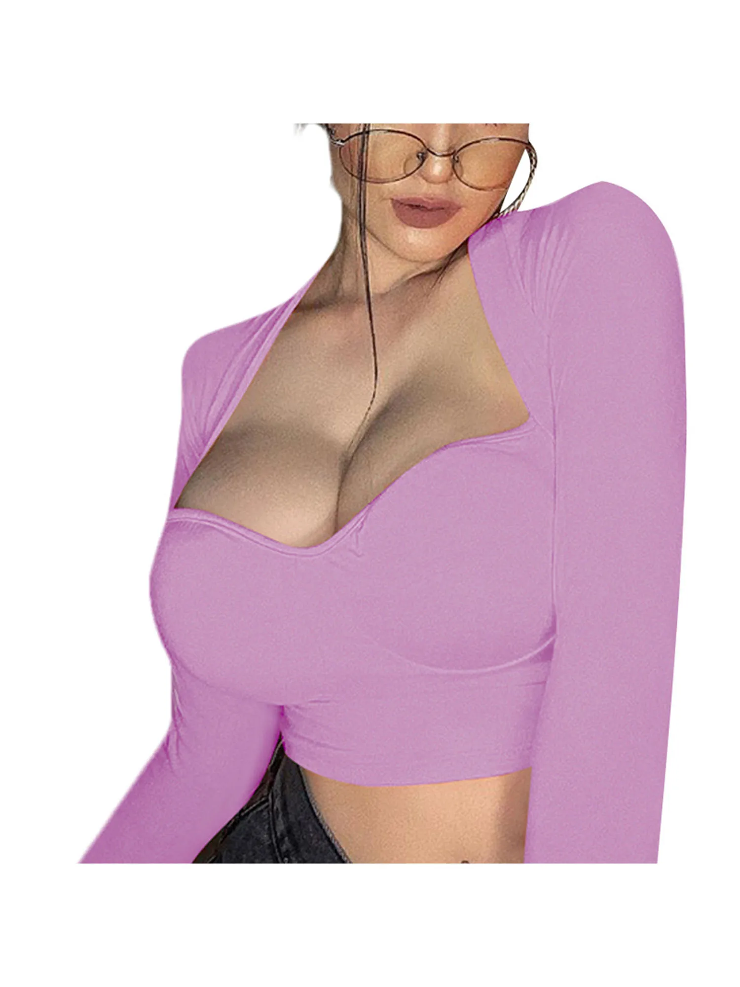Топы с v-образной горловиной и длинными рукавами, дизайн с эффектом потертости, однотонный, простой и стильный.