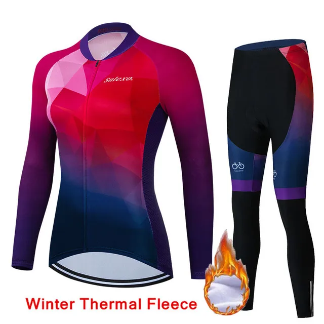 Женский зимний велосипедный костюм, теплый флисовый велосипедный костюм с длинным рукавом, костюм для горного велосипеда, велосипедный костюм, одежда для велоспорта, велосипедный костюм