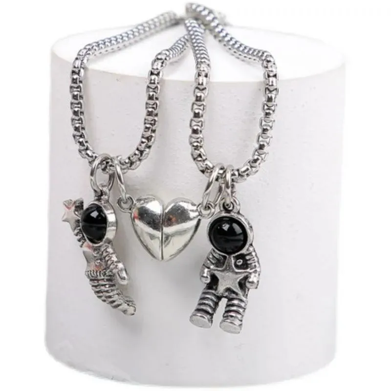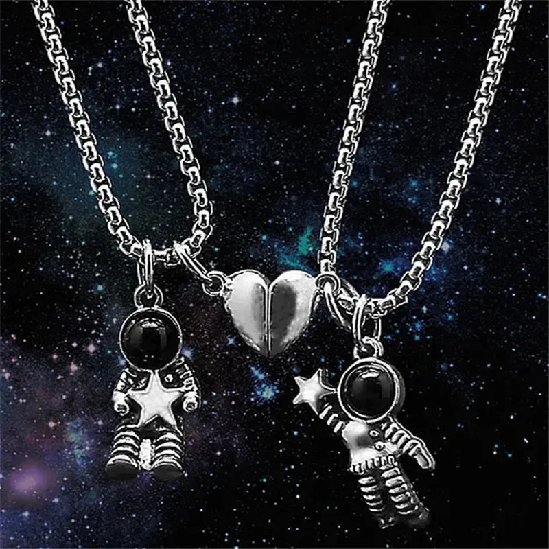 2 шт., минималистическая Подвеска для влюбленных, дружба, астронавт, на магнитном расстоянии, ожерелье для пары, ювелирное изделие, Подарок на годовщину