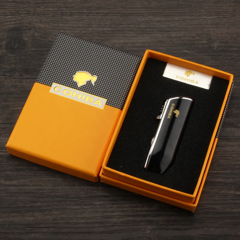 Роскошная Зажигалка для сигар COHIBA с тремя насадками, ветрозащитн...