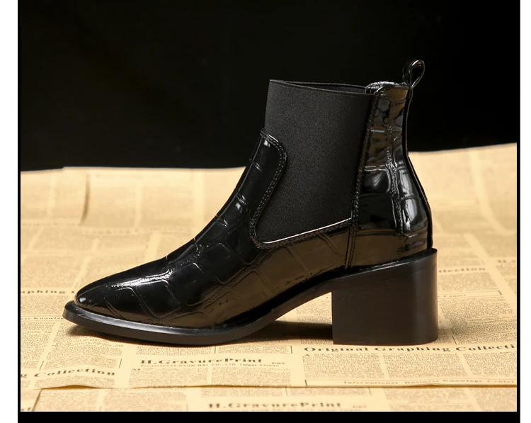 Женские ботинки на среднем каблуке, из лакированной кожи